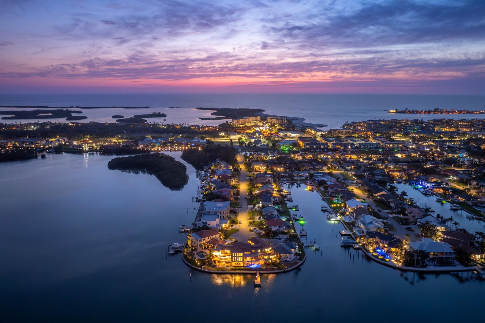 An extraordinary waterfront estate at the tip of the peninsula, this iconic Mediterranean residence commands nearly 200 feet of direct open-water frontage in Tierra Verde's coveted Sands Point community. Known as the "Magic Mike House" for its on-screen cameo in the film, the property offers sweeping views of the bay and the dramatic silhouette of the Sunshine Skyway Bridge. Behind private gates, this walled compound features a rare separate guest casita. Showcasing timeless sophistication, meticulous craftsmanship, and rare amenities--including two elevators--this residence blends refined architectural details with expansive entertaining spaces to deliver coastal luxury reimagined for modern living. Step into the dramatic great room featuring soaring two-story ceilings, Saltillo-tile flooring, breathtaking views, and a striking limestone fireplace that flows seamlessly to dining and lounge areas with an impressive concave window offering panoramic bay vistas. The expansive living level includes dual offices or flex space, a primary-suite wing with a stunning custom dual closet and dressing area, an indulgent bath with a walk-in shower, and a private waterfront terrace. A well-appointed media room with surround sound, wet bar, and beverage station complements the main level. Private spaces on the upper level include a grand guest quarter (casita) with a separate elevator, two en-suite guest bedrooms, a living room, dining space, a secondary bar and lounge, and a second laundry--providing exemplary accommodations for extended family or guests. There is an additional bonus room on the upper level, along with two additional guest bedrooms, each with access to the waterfront terrace and rooftop for 360-degree vistas. Outdoors, experience private resort-level allure with a heated saltwater pool and spa, accessible via dual staircases. The ground-level wet bar and covered lanai offer exceptional poolside dining and entertaining areas. Engage with abundant marine life while preparing for a glorious day on the open water from a full-service dock. Additional appointments include impact-rated doors and windows, dual elevators, an Elan Smart Home System, automated window treatments, a whole-home generator, Lutron lighting, a water-purification system, a 5+ car garage, a portico, and exterior video security. Close to the country's top-rated beaches, Tierra Verde Marina, Shell Key, and 15 minutes to Downtown St. Petersburg, with the very best of the area's sports venues, shopping, dining, and recreation mere minutes away. Boasting easy access to the Gulf in this revered coastal location, the ultimate Florida waterfront lifestyle awaits.