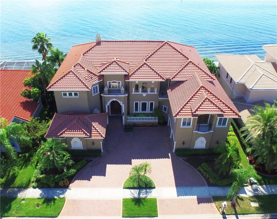 Price Reduction Amazing Value! The ultimate in luxury and sophistication awaits directly on Tampa Bay. Featuring unobstructed bay and Gulf views, this newer 5 bedroom, 5.5 bath custom Mediterranean masterpiece offers 6,400 exceptionally appointed square feet. Built in 2007, enjoy the very best of entertaining indoors and out, with stunning panoramic views of Tampa and St. Petersburg, along with a spectacular interior, soaring ceilings, waterfront lanai, pool, spa and outdoor kitchen. You’re welcomed by a stunning double-door entry to pure grandeur with custom woodwork and architectural details, an impressive living room with breathtaking water views and fireplace, custom kitchen augmented with granite, top-of-the-line stainless appliances, butler's pantry, center island, breakfast bar and wine storage. Additional features include a formal dining room, family room, waterfront library/den/playroom, a gracious master suite, bonus room, 3-car garage, and a loft with wet bar and additional wine storage. Designed to maximize your waterfront lifestyle, Andalucia is a gated waterfront community offering a boat slip in the private Yacht Club, along with a community pool, tennis and playground.