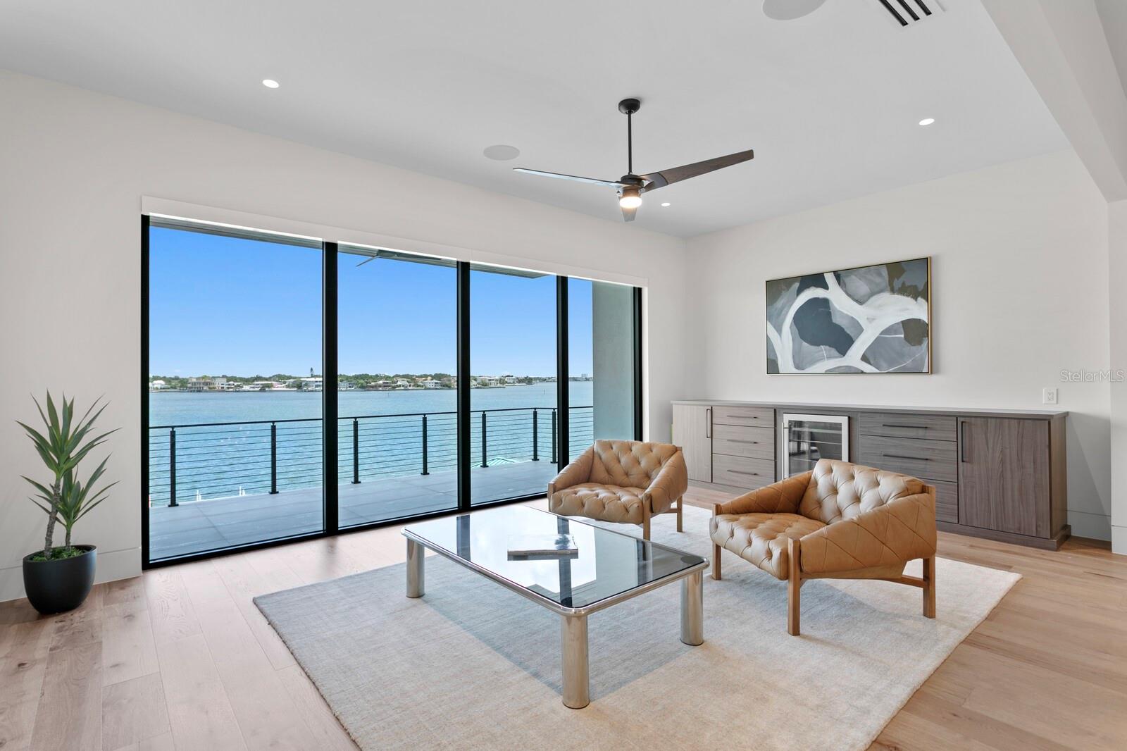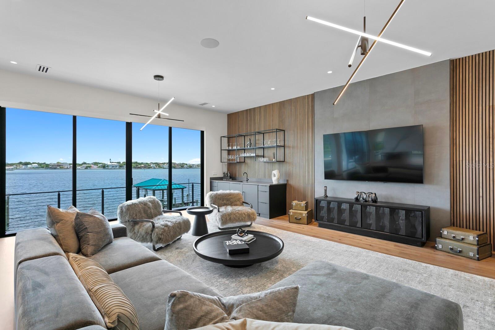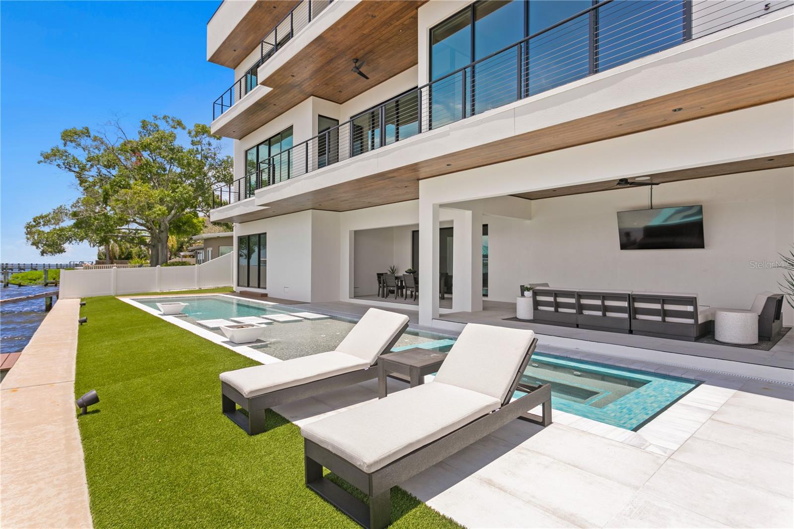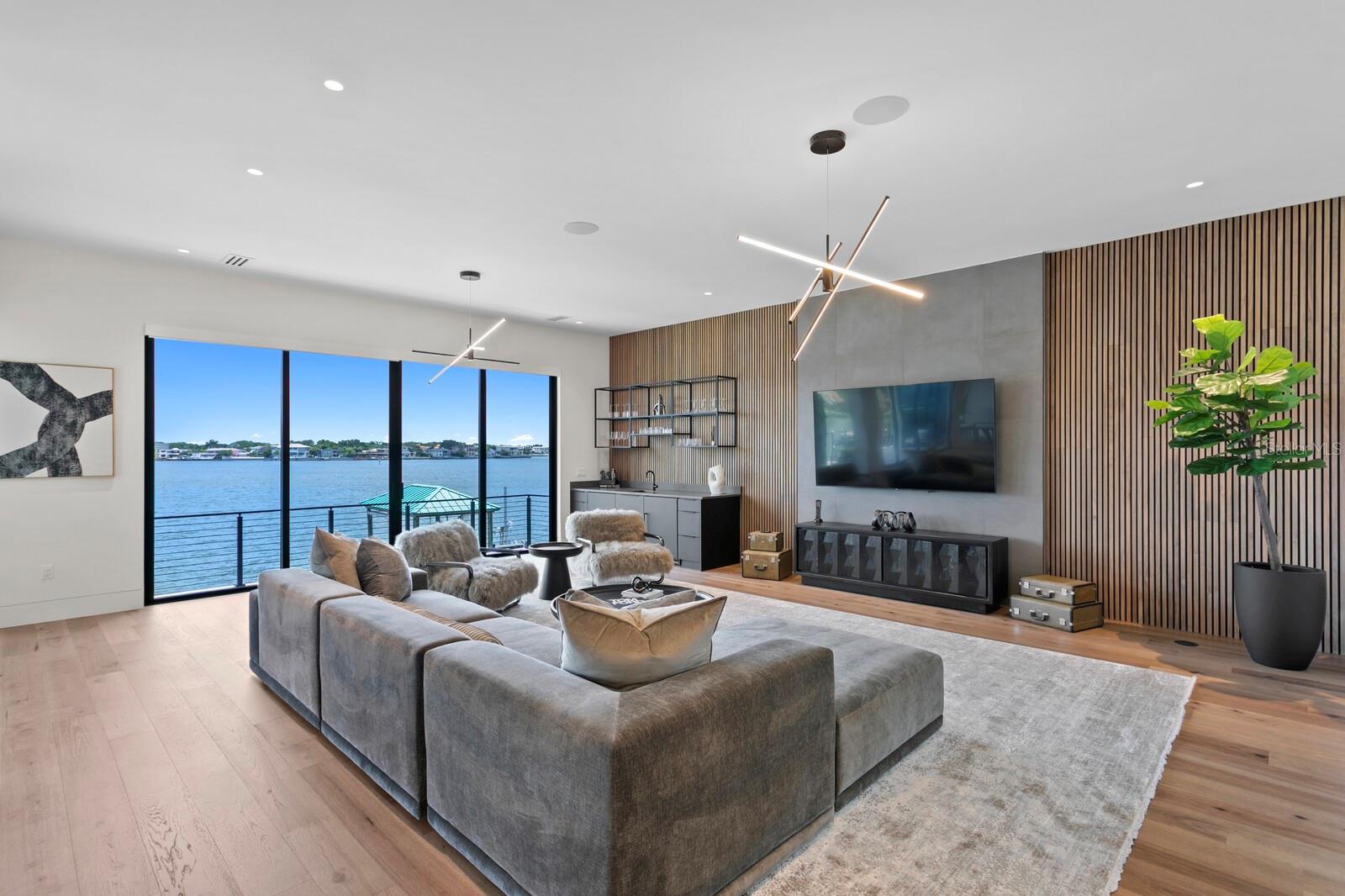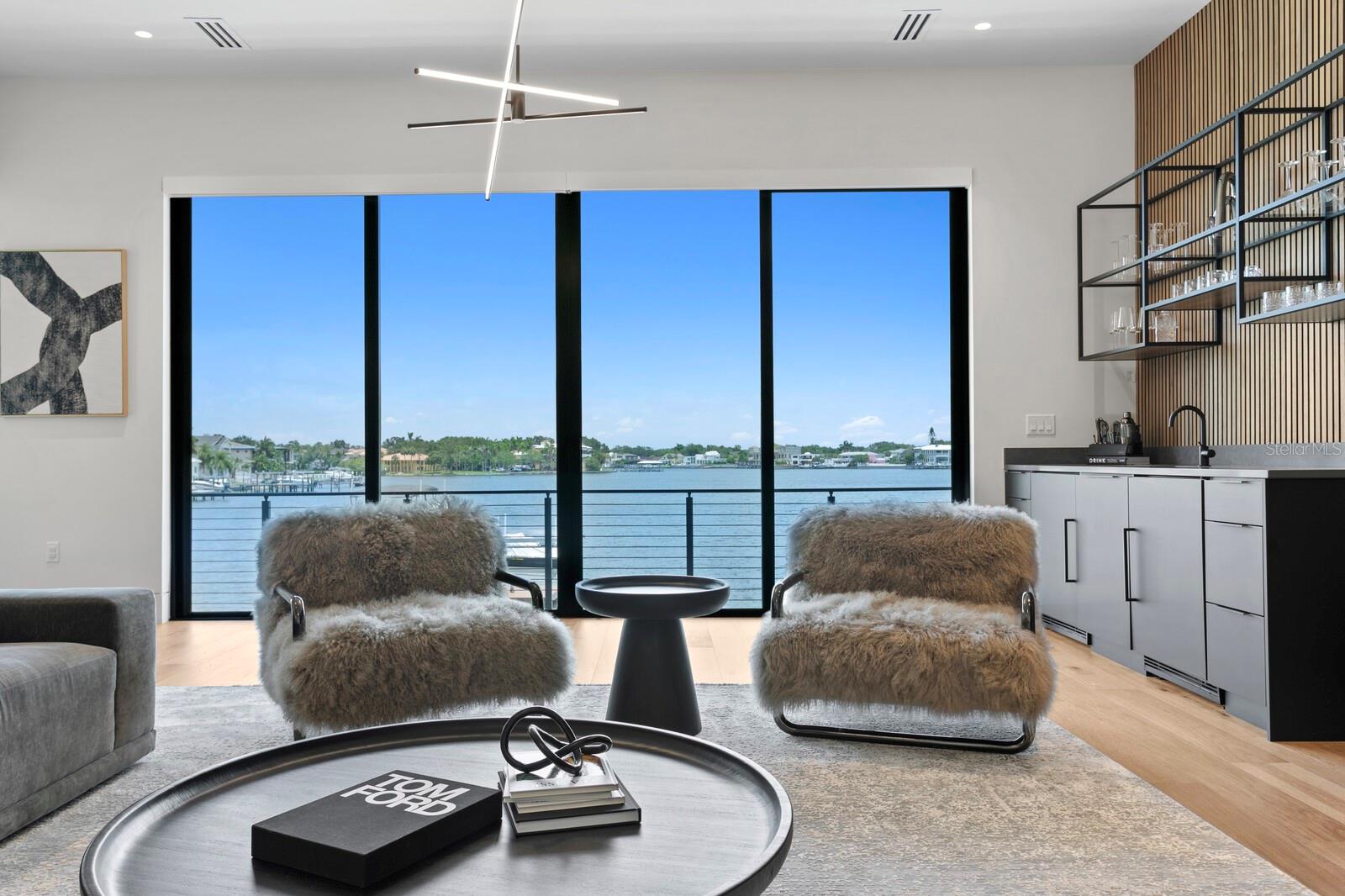 Incredible Value for a completed NEW construction MODERN BAYFRONT home in sought after Beach Park. This superior Bayfront location offers sweeping water views and quality custom construction, refined finishes and state-of-the-art design. Completed in 2023 by Modesta Homes, enjoy the best of waterfront living with a dramatic floating staircase, glass elevator, expansive water views, 6 bedrooms, 5.5 baths, 8,766 sq. ft. of living area, along with a new dock and seawall. Constructed with concrete block, impact windows/doors, and elevated living for flood risk reduction and optimal insurance premiums. Exceptional living spaces include a generous office, formal dining room, movie theater, waterfront Flex Room, lounge, entertaining bar, loft/gallery, along with a climate-controlled wine cellar. Created with spectacular entertaining in mind and offering full retracting glass doors to the waterfront terrace, a striking 360-degree fireplace centerpiece, sleek European-influenced chef's kitchen with Wolf and Sub-Zero gas appliances, additional prep kitchen and generous island. Thoughtful design greets you in the primary suite with a modern aesthetic, terrace and water views, spa-inspired bath, deep soaking tub, custom floating vanity and closet beyond compare. Outdoors, enjoy a custom waterfront pool with fire fountains, floating spa, along with dual sun decks, dock and dual lifts (16K and 6K). Additional features in the energy-efficient construction include dual laundry rooms, 2-row home theater with 150" 4k Ultra HD screen, multiple waterfront terraces, 10-car garage and EV charging, Smart Home Systems, modern aluminum and glass impact garage doors, Low-E insulated/impact windows/doors, RHEEM Tankless water heater, Pentair automated pool control, imported tile and custom lighting, and tropical landscape/turf. Located in a top-rated school district and convenient to Westshore and International Mall, Tampa International Airport, shopping, dining, sports venues and entertainment. Available furnished at additional cost.