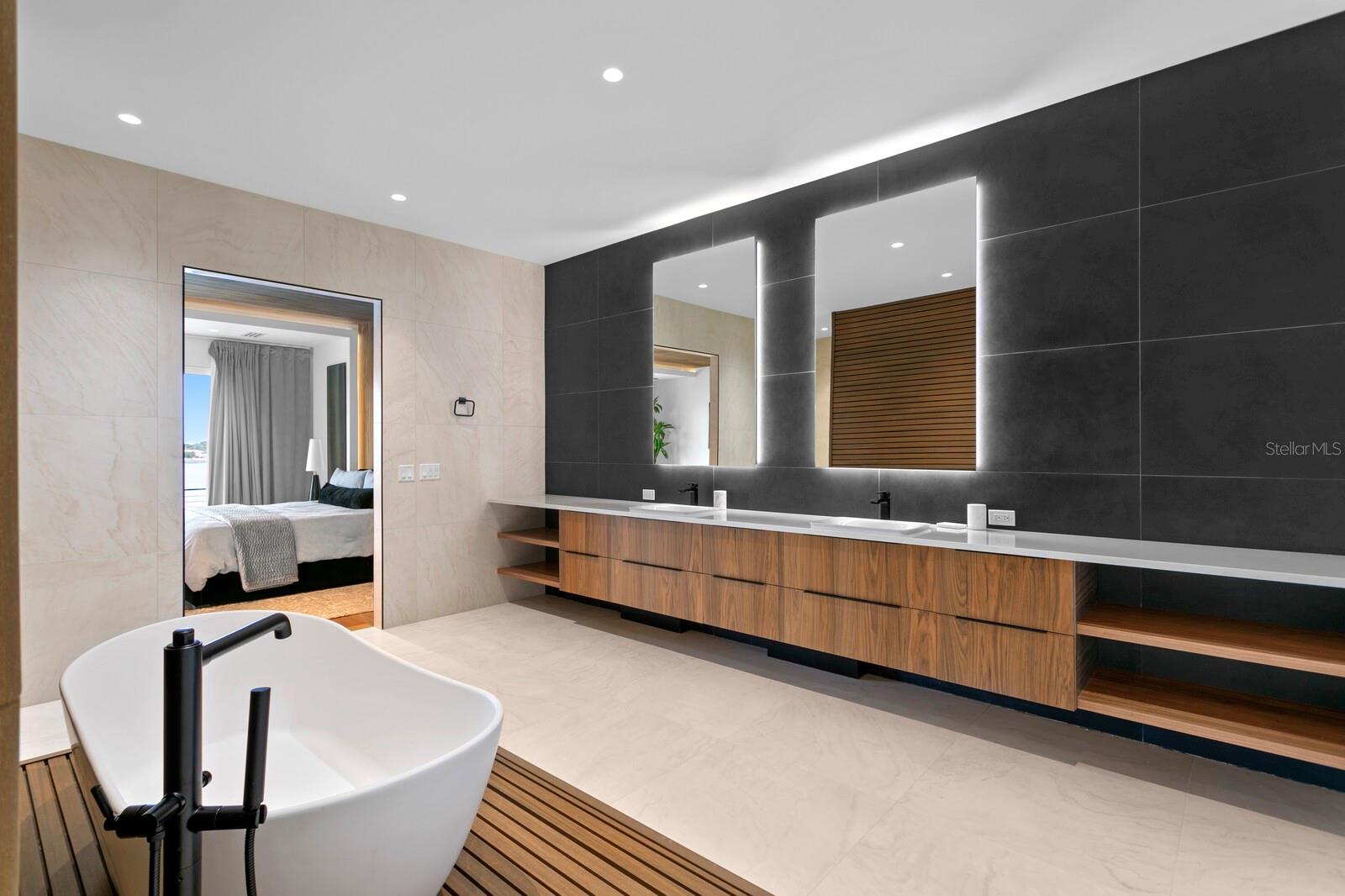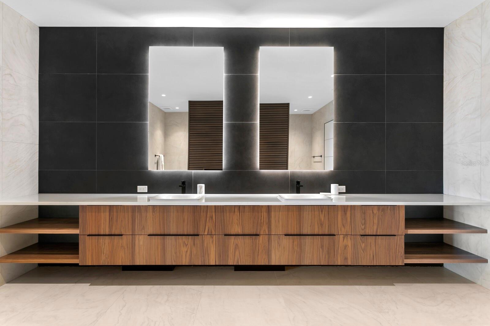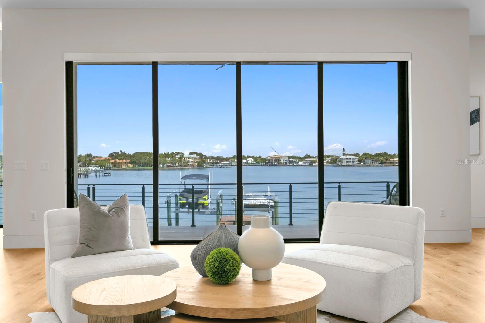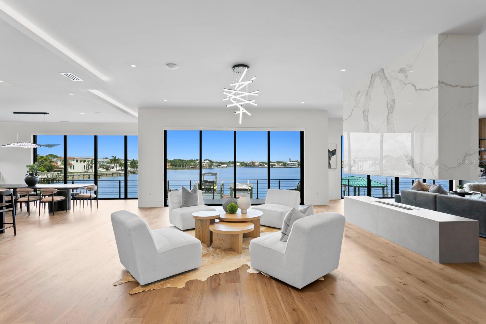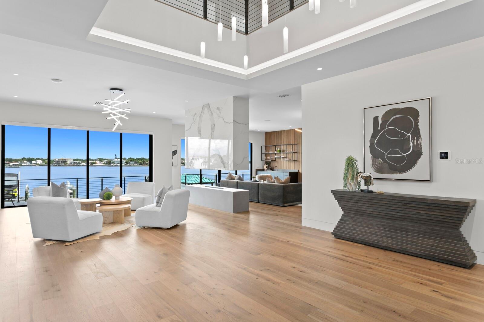 Incredible Value for a completed NEW construction MODERN BAYFRONT home in sought after Beach Park. This superior Bayfront location offers sweeping water views and quality custom construction, refined finishes and state-of-the-art design. Completed in 2023 by Modesta Homes, enjoy the best of waterfront living with a dramatic floating staircase, glass elevator, expansive water views, 6 bedrooms, 5.5 baths, 8,766 sq. ft. of living area, along with a new dock and seawall. Constructed with concrete block, impact windows/doors, and elevated living for flood risk reduction and optimal insurance premiums. Exceptional living spaces include a generous office, formal dining room, movie theater, waterfront Flex Room, lounge, entertaining bar, loft/gallery, along with a climate-controlled wine cellar. Created with spectacular entertaining in mind and offering full retracting glass doors to the waterfront terrace, a striking 360-degree fireplace centerpiece, sleek European-influenced chef's kitchen with Wolf and Sub-Zero gas appliances, additional prep kitchen and generous island. Thoughtful design greets you in the primary suite with a modern aesthetic, terrace and water views, spa-inspired bath, deep soaking tub, custom floating vanity and closet beyond compare. Outdoors, enjoy a custom waterfront pool with fire fountains, floating spa, along with dual sun decks, dock and dual lifts (16K and 6K). Additional features in the energy-efficient construction include dual laundry rooms, 2-row home theater with 150" 4k Ultra HD screen, multiple waterfront terraces, 10-car garage and EV charging, Smart Home Systems, modern aluminum and glass impact garage doors, Low-E insulated/impact windows/doors, RHEEM Tankless water heater, Pentair automated pool control, imported tile and custom lighting, and tropical landscape/turf. Located in a top-rated school district and convenient to Westshore and International Mall, Tampa International Airport, shopping, dining, sports venues and entertainment. Available furnished at additional cost.