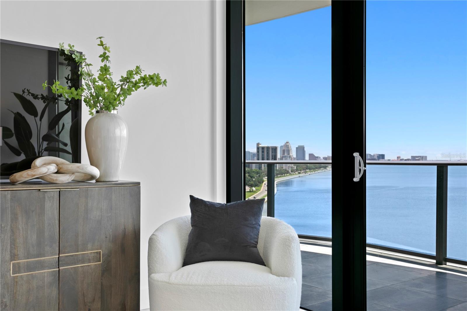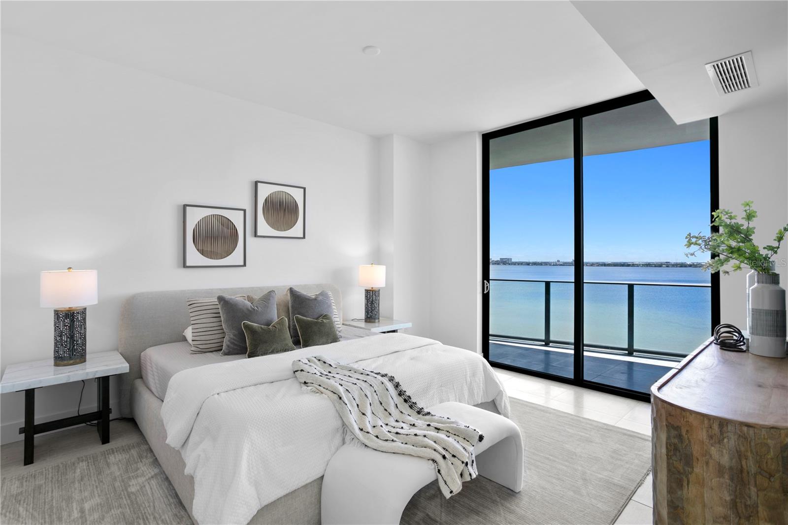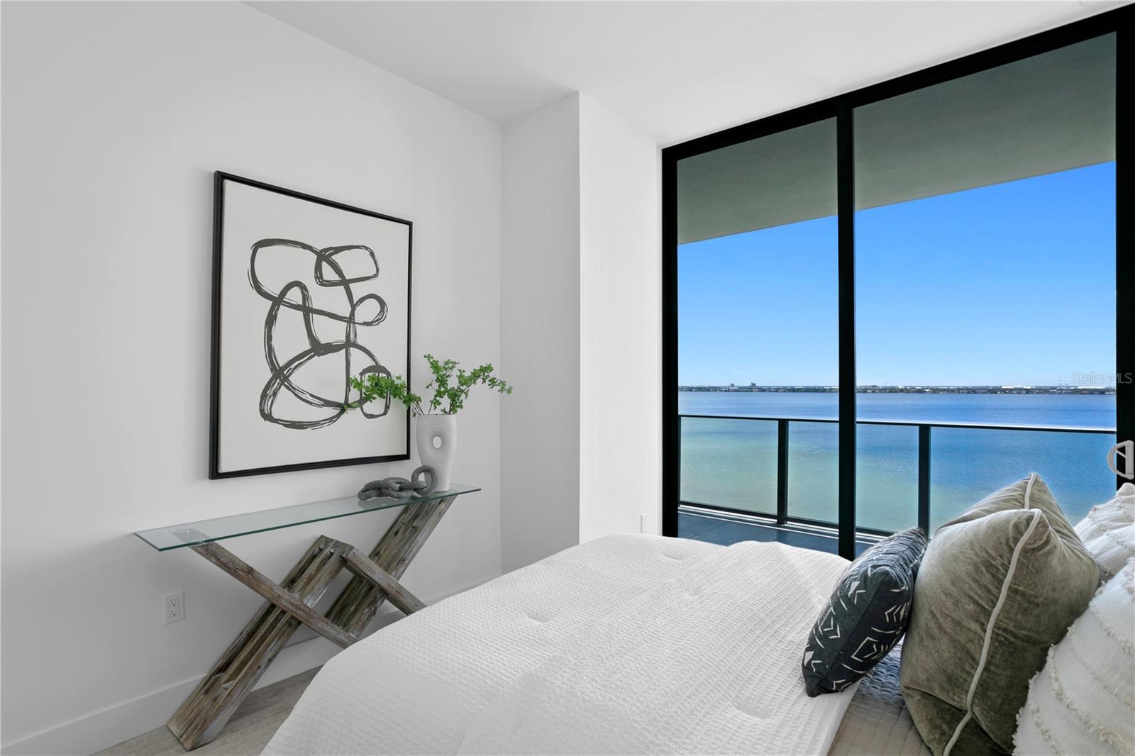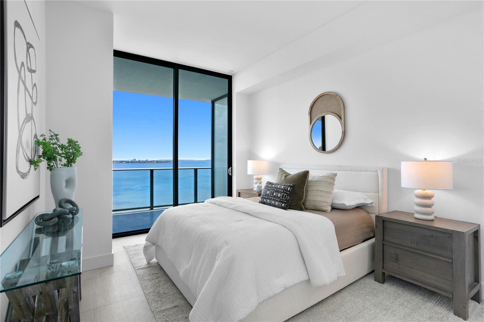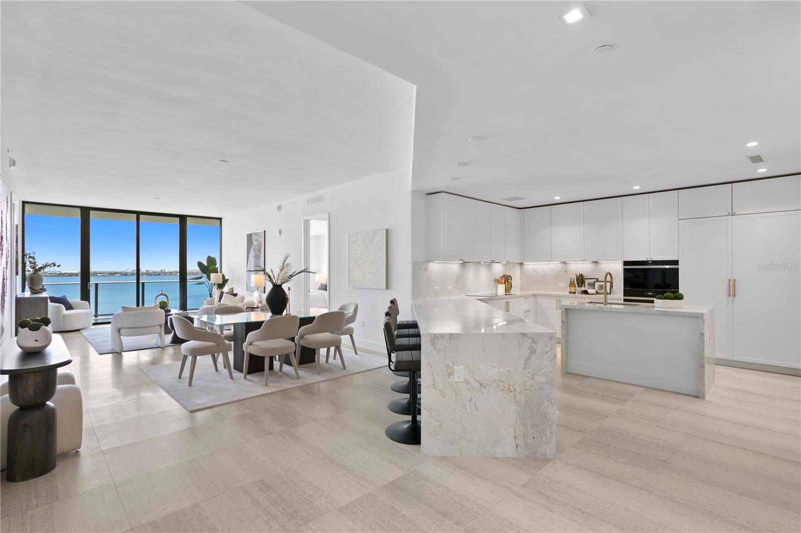 Enjoy the epitome of resort-style living at the renowned The Ritz-Carlton Residences, Tampa where every thoughtfully designed detail exudes the unmistakable essence of Ritz-Carlton luxury. Upon arrival at your private elevator lobby, you are instantly immersed into a world of meticulous detail and refined elegance in this luxury 2 bedroom, plus den condo. Boasting dazzling water views and the Tampa city skyline from the floor-to-ceiling windows and the oversized balcony overlooking iconic Bayshore Boulevard. Abundant natural light and honed marble flooring throughout provide a luxurious and serene living environment. The light and bright gourmet kitchen is equipped with top-of-the-line Sub-Zero and Wolf appliances, seamlessly integrated with bespoke marble waterfall countertops and elegant custom Italian cabinetry by Italkraft. The large primary bedroom leads to an oversized closet space and an opulent marble clad spa-inspired bath with a soaking tub. The den offers flex space for an office or 3rd bedroom. The oversized laundry room features full-size, top-of-the-line washers and dryers for utmost comfort and convenience, plus an abundance of storage space. The Ritz-Carlton resort lifestyle provides a tropical pool terrace with food and beverage options, state-of-the-art fitness center, spa services, a designated playroom, media lounge and golf simulator, pickleball and tennis courts, along with valet parking. A dedicated concierge is available to assist with personalized services, along with a 24/7 door attendant. Take a waterfront stroll along Bayshore Boulevard, known as one of the longest continuous sidewalks in the United States. Located near great shopping and restaurants, exhilarating nightlife and A-rated schools. Enjoy all the South Tampa lifestyle has to offer including walking and biking, an intrinsic art scene, sports venues, and the ease of access to airports and a vibrant downtown. Furnishings available for purchase from Dwell Market Staging at additional cost.