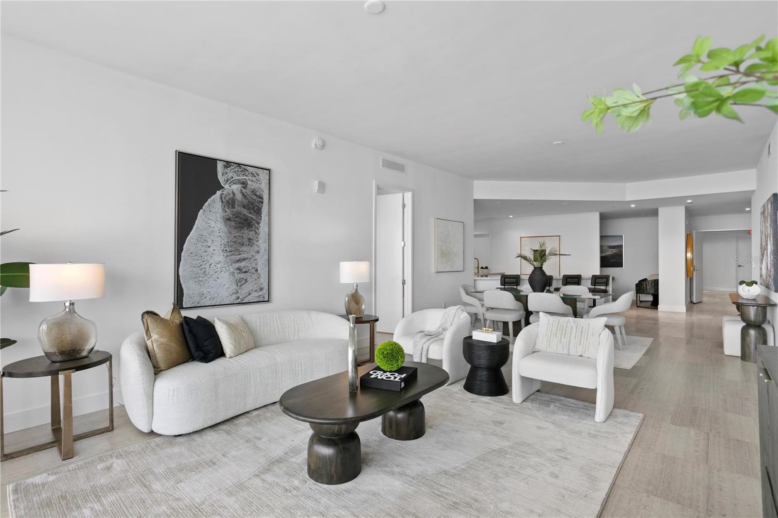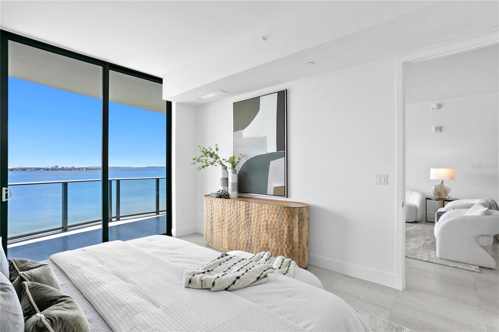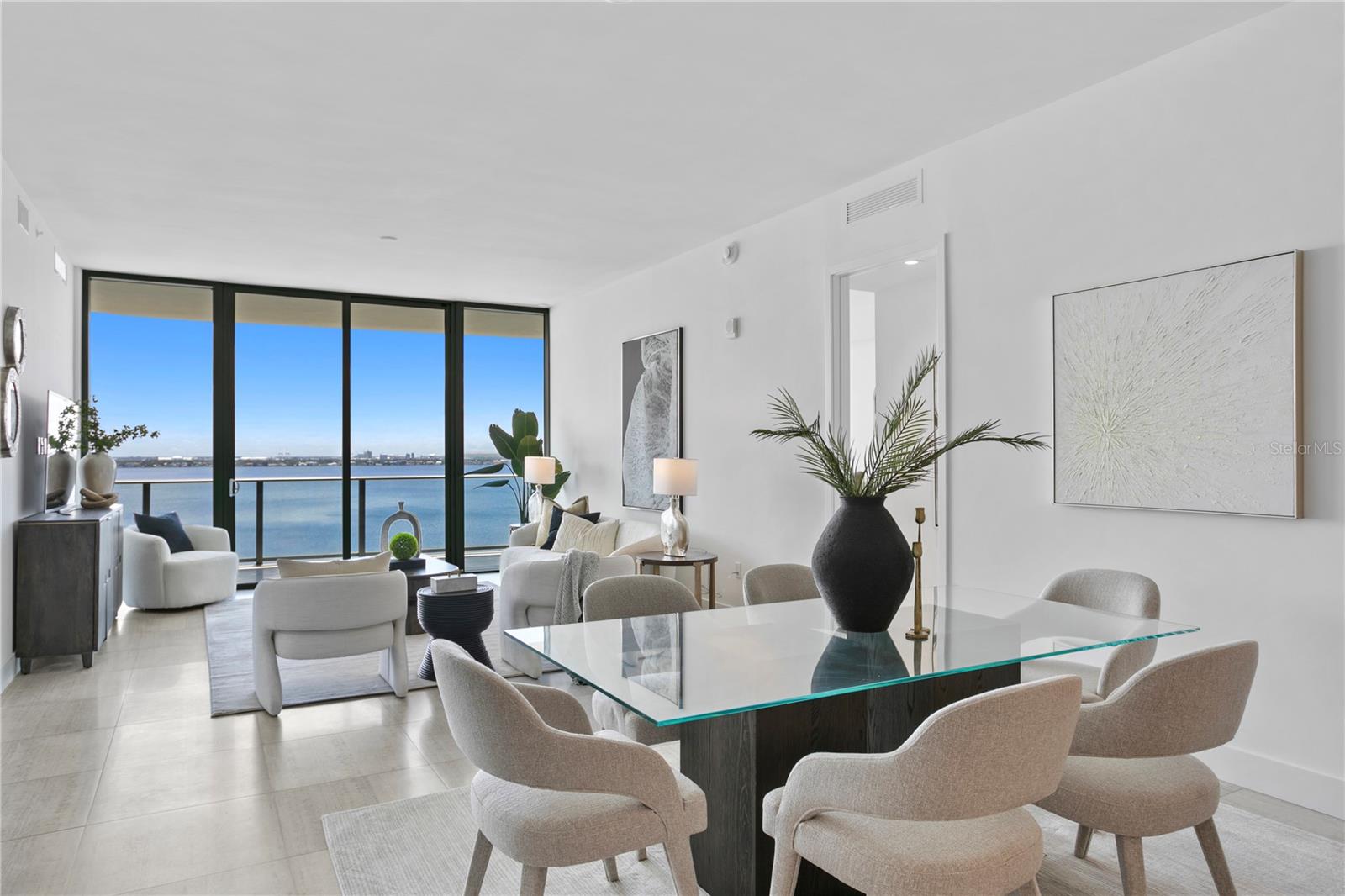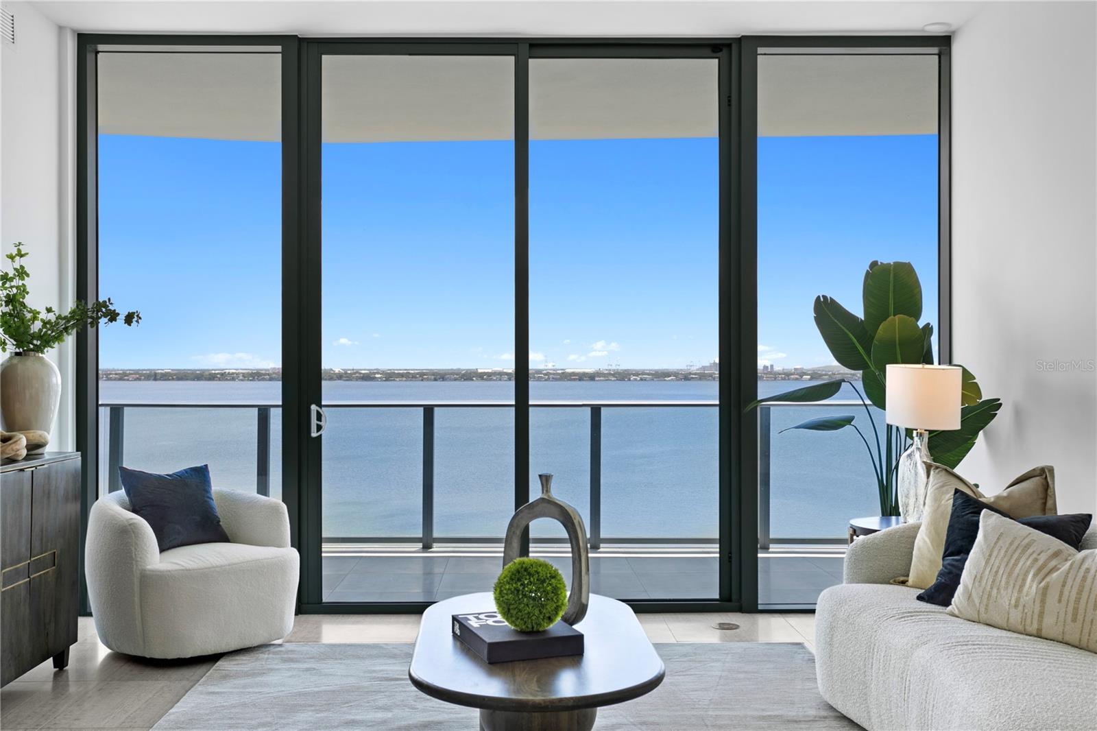 Enjoy the epitome of resort-style living at the renowned The Ritz-Carlton Residences, Tampa where every thoughtfully designed detail exudes the unmistakable essence of Ritz-Carlton luxury. Upon arrival at your private elevator lobby, you are instantly immersed into a world of meticulous detail and refined elegance in this luxury 2 bedroom, plus den condo. Boasting dazzling water views and the Tampa city skyline from the floor-to-ceiling windows and the oversized balcony overlooking iconic Bayshore Boulevard. Abundant natural light and honed marble flooring throughout provide a luxurious and serene living environment. The light and bright gourmet kitchen is equipped with top-of-the-line Sub-Zero and Wolf appliances, seamlessly integrated with bespoke marble waterfall countertops and elegant custom Italian cabinetry by Italkraft. The large primary bedroom leads to an oversized closet space and an opulent marble clad spa-inspired bath with a soaking tub. The den offers flex space for an office or 3rd bedroom. The oversized laundry room features full-size, top-of-the-line washers and dryers for utmost comfort and convenience, plus an abundance of storage space. The Ritz-Carlton resort lifestyle provides a tropical pool terrace with food and beverage options, state-of-the-art fitness center, spa services, a designated playroom, media lounge and golf simulator, pickleball and tennis courts, along with valet parking. A dedicated concierge is available to assist with personalized services, along with a 24/7 door attendant. Take a waterfront stroll along Bayshore Boulevard, known as one of the longest continuous sidewalks in the United States. Located near great shopping and restaurants, exhilarating nightlife and A-rated schools. Enjoy all the South Tampa lifestyle has to offer including walking and biking, an intrinsic art scene, sports venues, and the ease of access to airports and a vibrant downtown. Furnishings available for purchase from Dwell Market Staging at additional cost.