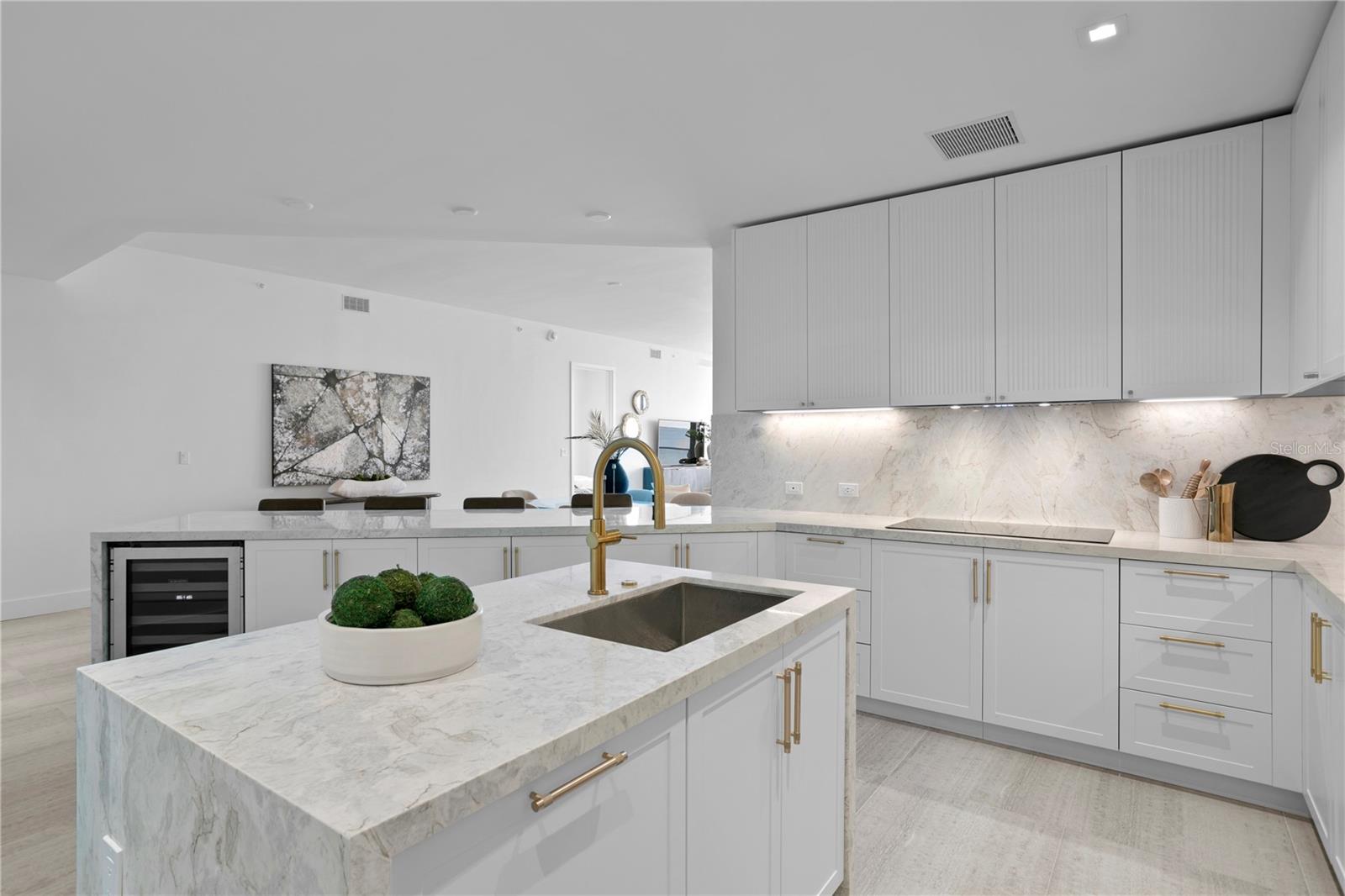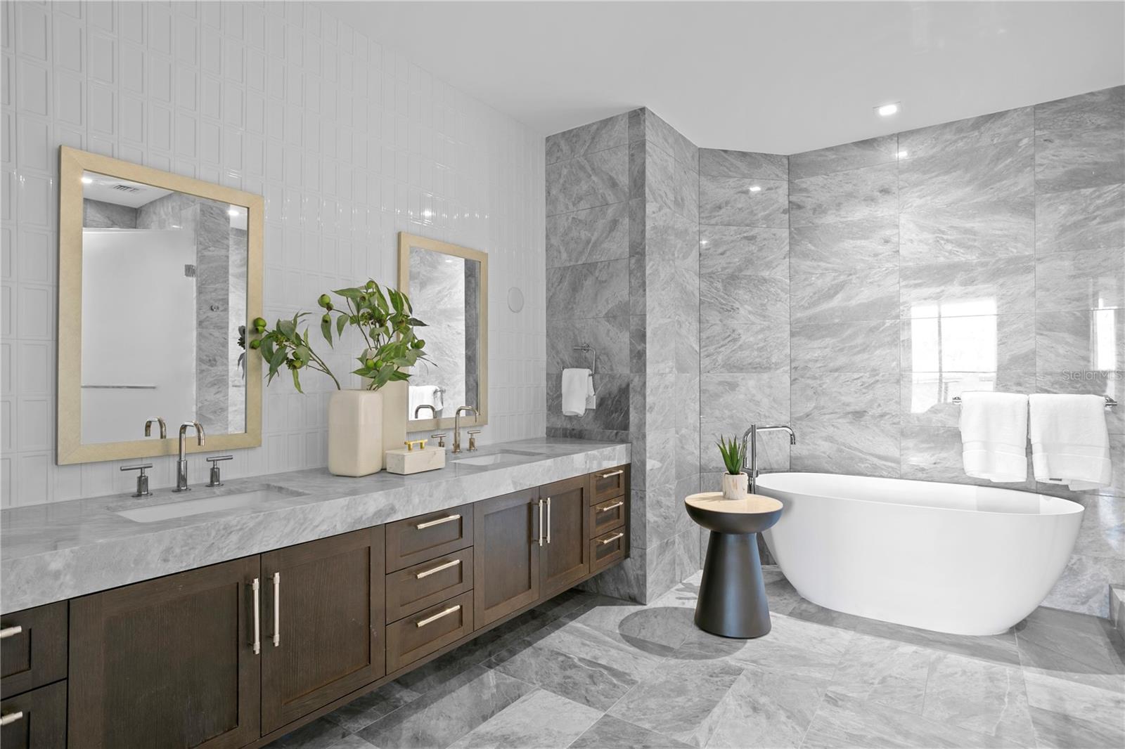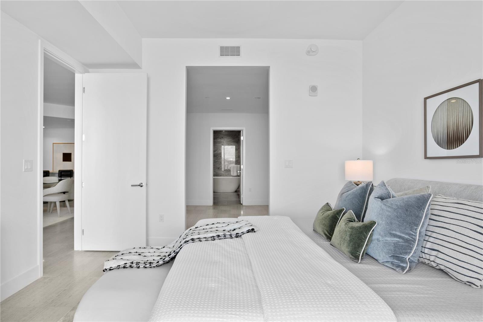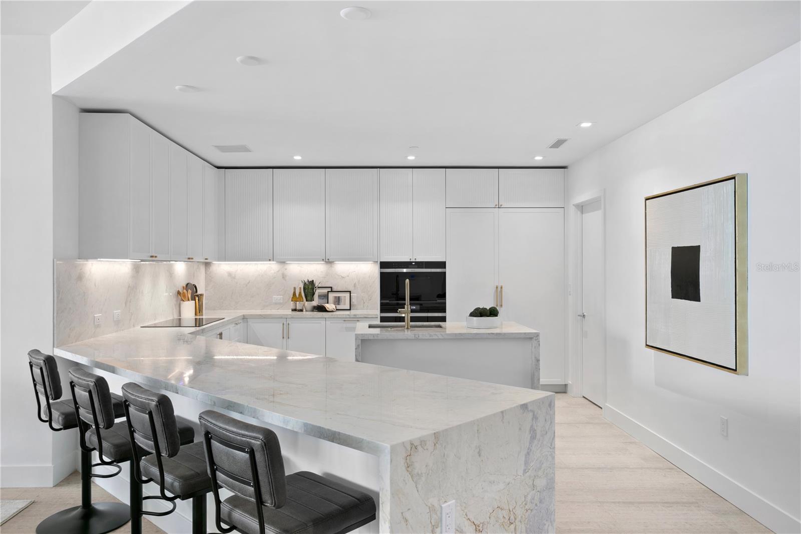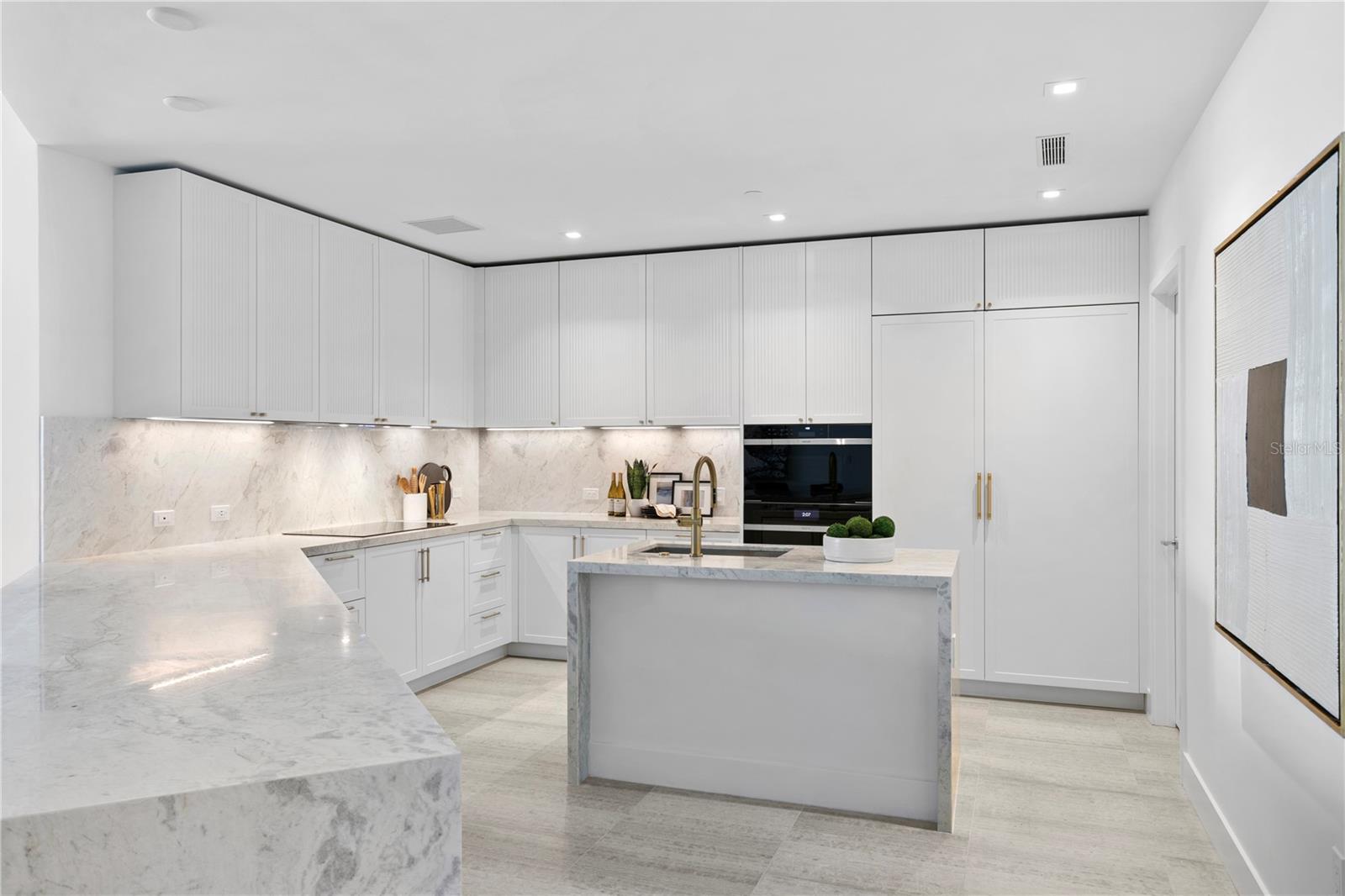 Enjoy the epitome of resort-style living at the renowned The Ritz-Carlton Residences, Tampa where every thoughtfully designed detail exudes the unmistakable essence of Ritz-Carlton luxury. Upon arrival at your private elevator lobby, you are instantly immersed into a world of meticulous detail and refined elegance in this luxury 2 bedroom, plus den condo. Boasting dazzling water views and the Tampa city skyline from the floor-to-ceiling windows and the oversized balcony overlooking iconic Bayshore Boulevard. Abundant natural light and honed marble flooring throughout provide a luxurious and serene living environment. The light and bright gourmet kitchen is equipped with top-of-the-line Sub-Zero and Wolf appliances, seamlessly integrated with bespoke marble waterfall countertops and elegant custom Italian cabinetry by Italkraft. The large primary bedroom leads to an oversized closet space and an opulent marble clad spa-inspired bath with a soaking tub. The den offers flex space for an office or 3rd bedroom. The oversized laundry room features full-size, top-of-the-line washers and dryers for utmost comfort and convenience, plus an abundance of storage space. The Ritz-Carlton resort lifestyle provides a tropical pool terrace with food and beverage options, state-of-the-art fitness center, spa services, a designated playroom, media lounge and golf simulator, pickleball and tennis courts, along with valet parking. A dedicated concierge is available to assist with personalized services, along with a 24/7 door attendant. Take a waterfront stroll along Bayshore Boulevard, known as one of the longest continuous sidewalks in the United States. Located near great shopping and restaurants, exhilarating nightlife and A-rated schools. Enjoy all the South Tampa lifestyle has to offer including walking and biking, an intrinsic art scene, sports venues, and the ease of access to airports and a vibrant downtown. Furnishings available for purchase from Dwell Market Staging at additional cost.