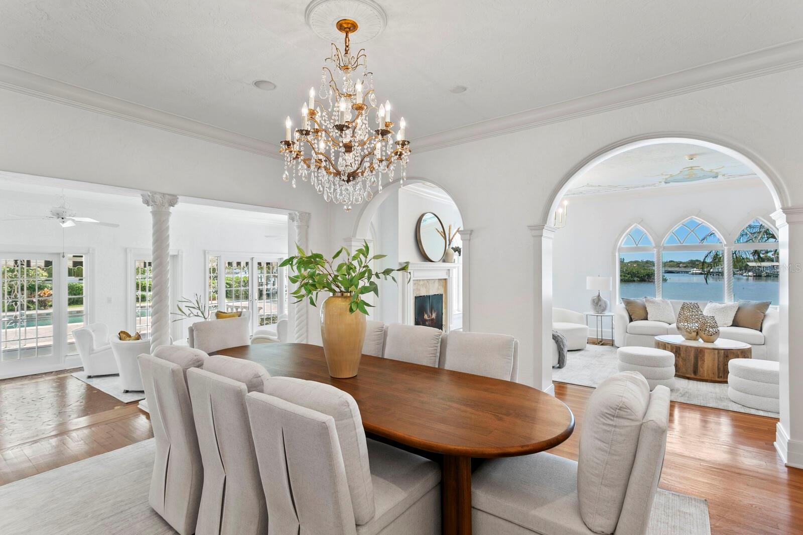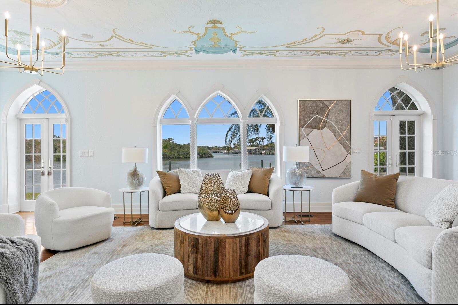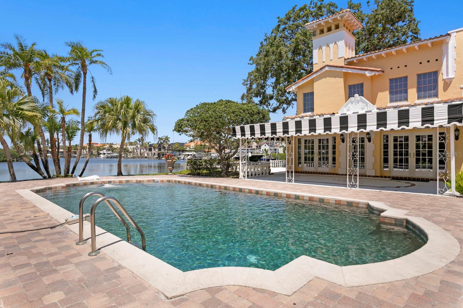 **Iconic Waterfront Estate on Brightwaters Blvd on an Oversized lot with Direct Access to the Open Bay** Welcome to 321 Brightwaters Blvd NE, a rare and expansive waterfront estate in the heart of Snell Isle. Set on a 0.41-acre oversized lot with 140 feet of water frontage, this one-of-a-kind property offers an unmatched blend of sophistication, luxury, and downtown convenience. Boaters will appreciate the direct, bridge-free access to open Tampa Bay waters--ideal for sailboats and larger vessels alike. The residence is a thoughtfully preserved architectural treasure with intricate details inspired by Venetian palazzos. Originally designed by the esteemed S.V. Schooley, architect for C. Perry Snell, and constructed with terra cotta block for exceptional longevity, this Mediterranean Revival masterpiece blends timeless design with modern comfort across more than 5,300 square feet of elegant living space. The property is gated and fenced, providing additional privacy and tranquility. Rich in character with spectacular water views, the home features soaring arched windows and passageways, intricate hand-painted Italian-inspired accents, and three fireplaces that add warmth and ambiance throughout. It has been updated with hurricane impact windows and doors, combining classic craftsmanship with peace-of-mind resilience. The main home features four spacious bedrooms and four full baths, an attached one-car garage, and a separate two-car garage with a full bath and dedicated exercise space--offering the perfect blend of comfort for daily living and versatility for grand-scale entertaining. The sparkling waterfront pool is a breathtaking centerpiece, reminiscent of the Italian Riviera, with lush tropical landscaping, expansive entertaining decks, and a deep-water dock with a boat lift creating a serene escape. Whether you're lounging poolside enjoying the sunset or entertaining guests under the open sky, the setting evokes the romance and relaxed luxury of a seaside villa. Located just minutes from vibrant downtown St. Petersburg, the Vinoy Golf Club, waterfront parks, art galleries, and world-class dining, this is more than a home--this is a legacy estate!