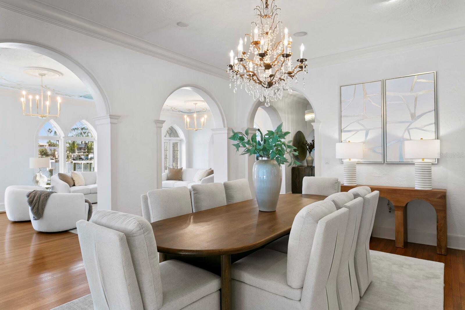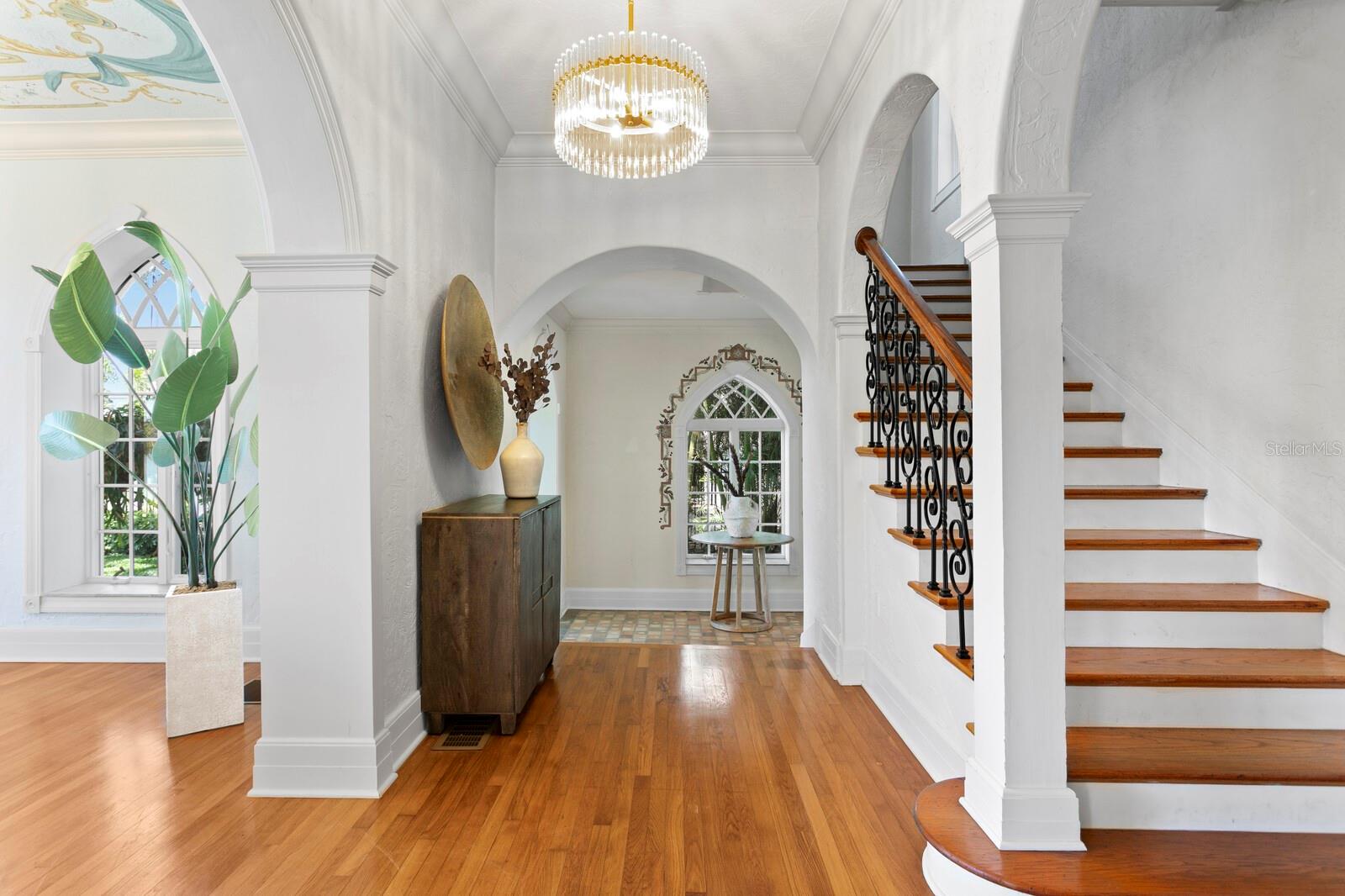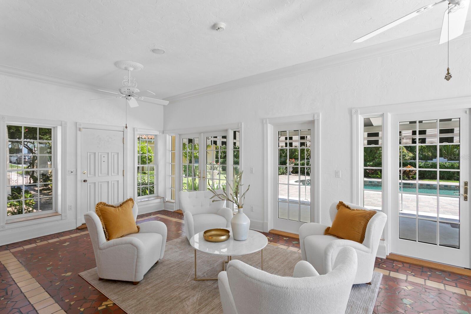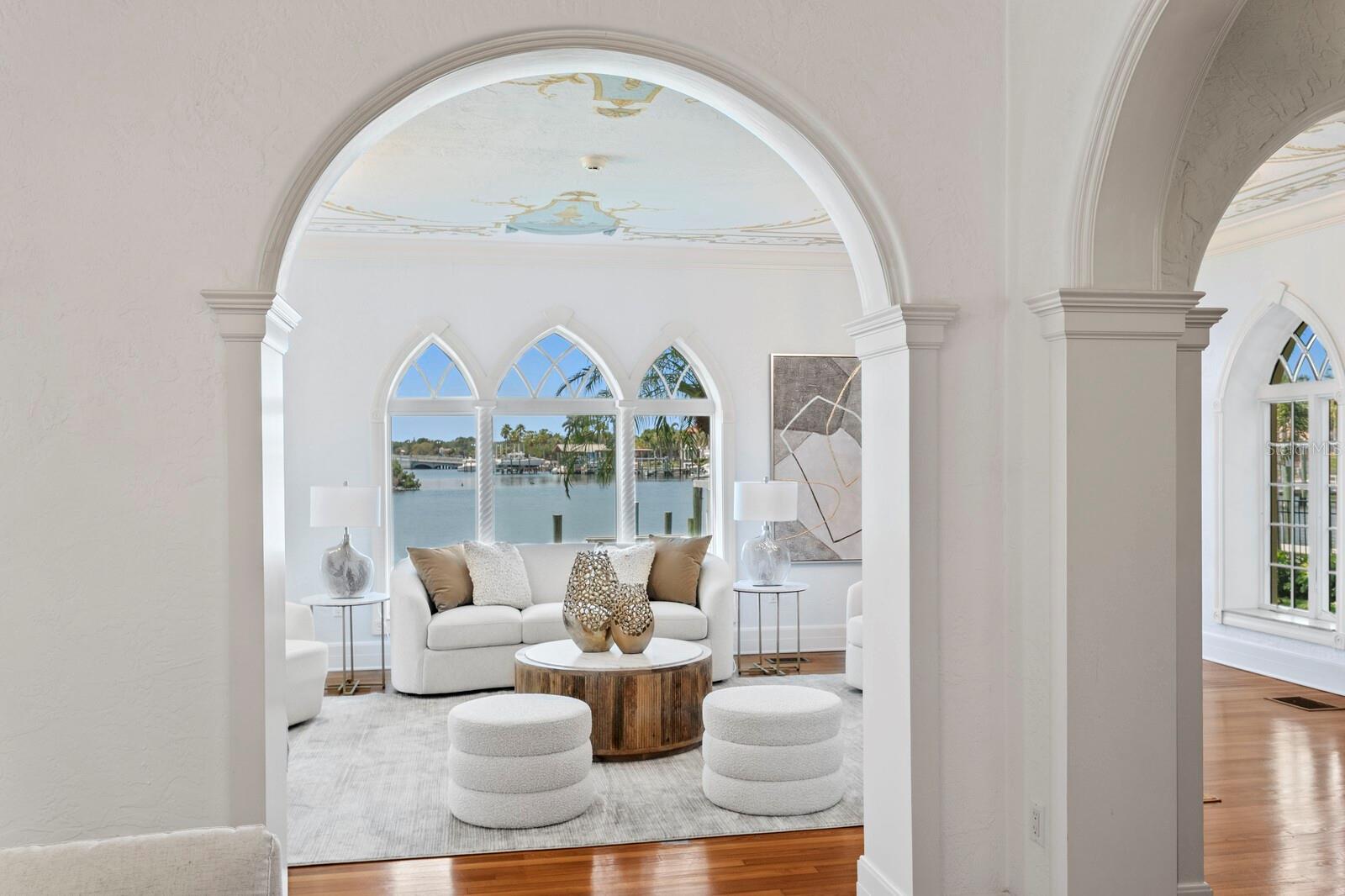 **Iconic Waterfront Estate on Brightwaters Blvd on an Oversized lot with Direct Access to the Open Bay** Welcome to 321 Brightwaters Blvd NE, a rare and expansive waterfront estate in the heart of Snell Isle. Set on a 0.41-acre oversized lot with 140 feet of water frontage, this one-of-a-kind property offers an unmatched blend of sophistication, luxury, and downtown convenience. Boaters will appreciate the direct, bridge-free access to open Tampa Bay waters--ideal for sailboats and larger vessels alike. The residence is a thoughtfully preserved architectural treasure with intricate details inspired by Venetian palazzos. Originally designed by the esteemed S.V. Schooley, architect for C. Perry Snell, and constructed with terra cotta block for exceptional longevity, this Mediterranean Revival masterpiece blends timeless design with modern comfort across more than 5,300 square feet of elegant living space. The property is gated and fenced, providing additional privacy and tranquility. Rich in character with spectacular water views, the home features soaring arched windows and passageways, intricate hand-painted Italian-inspired accents, and three fireplaces that add warmth and ambiance throughout. It has been updated with hurricane impact windows and doors, combining classic craftsmanship with peace-of-mind resilience. The main home features four spacious bedrooms and four full baths, an attached one-car garage, and a separate two-car garage with a full bath and dedicated exercise space--offering the perfect blend of comfort for daily living and versatility for grand-scale entertaining. The sparkling waterfront pool is a breathtaking centerpiece, reminiscent of the Italian Riviera, with lush tropical landscaping, expansive entertaining decks, and a deep-water dock with a boat lift creating a serene escape. Whether you're lounging poolside enjoying the sunset or entertaining guests under the open sky, the setting evokes the romance and relaxed luxury of a seaside villa. Located just minutes from vibrant downtown St. Petersburg, the Vinoy Golf Club, waterfront parks, art galleries, and world-class dining, this is more than a home--this is a legacy estate!