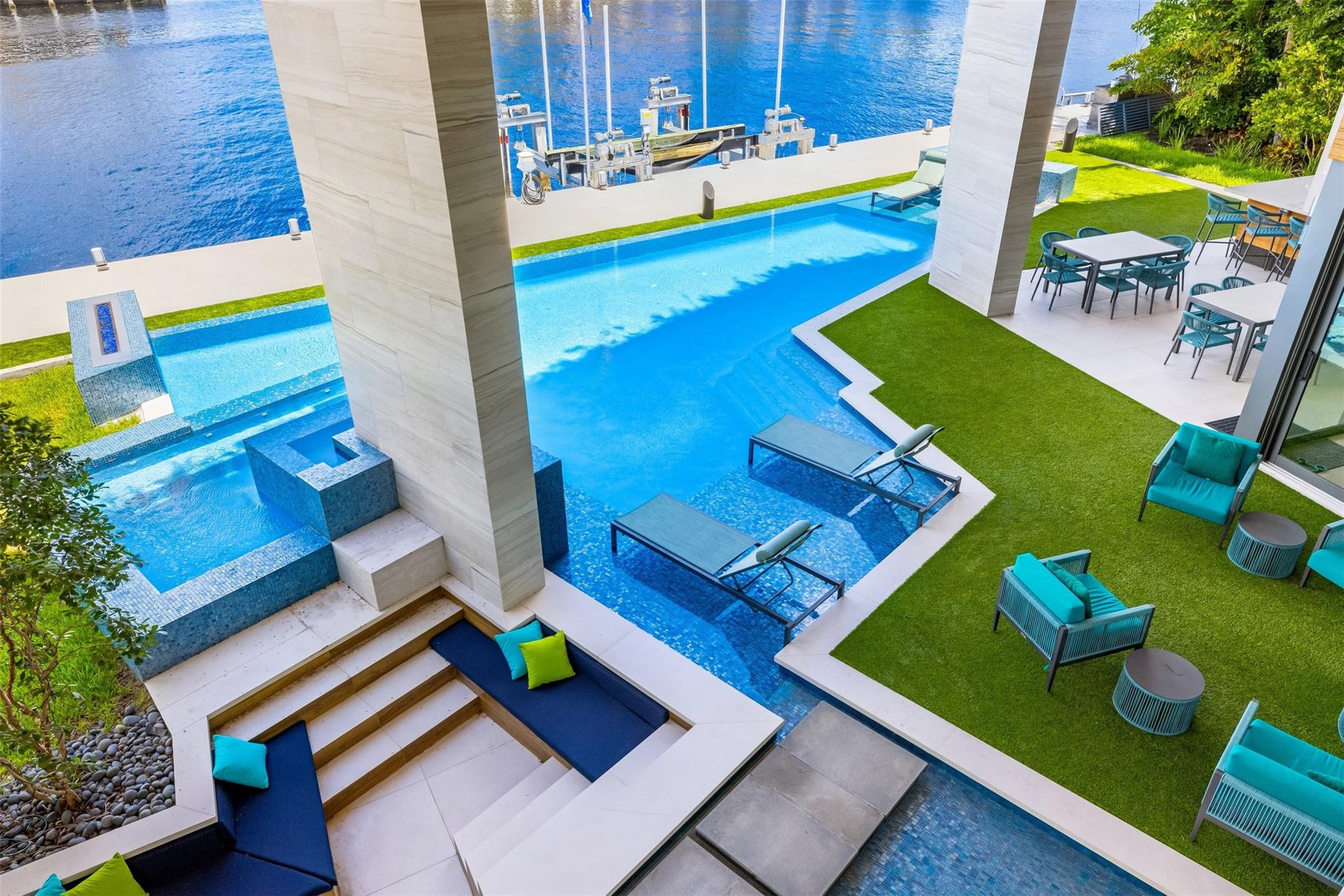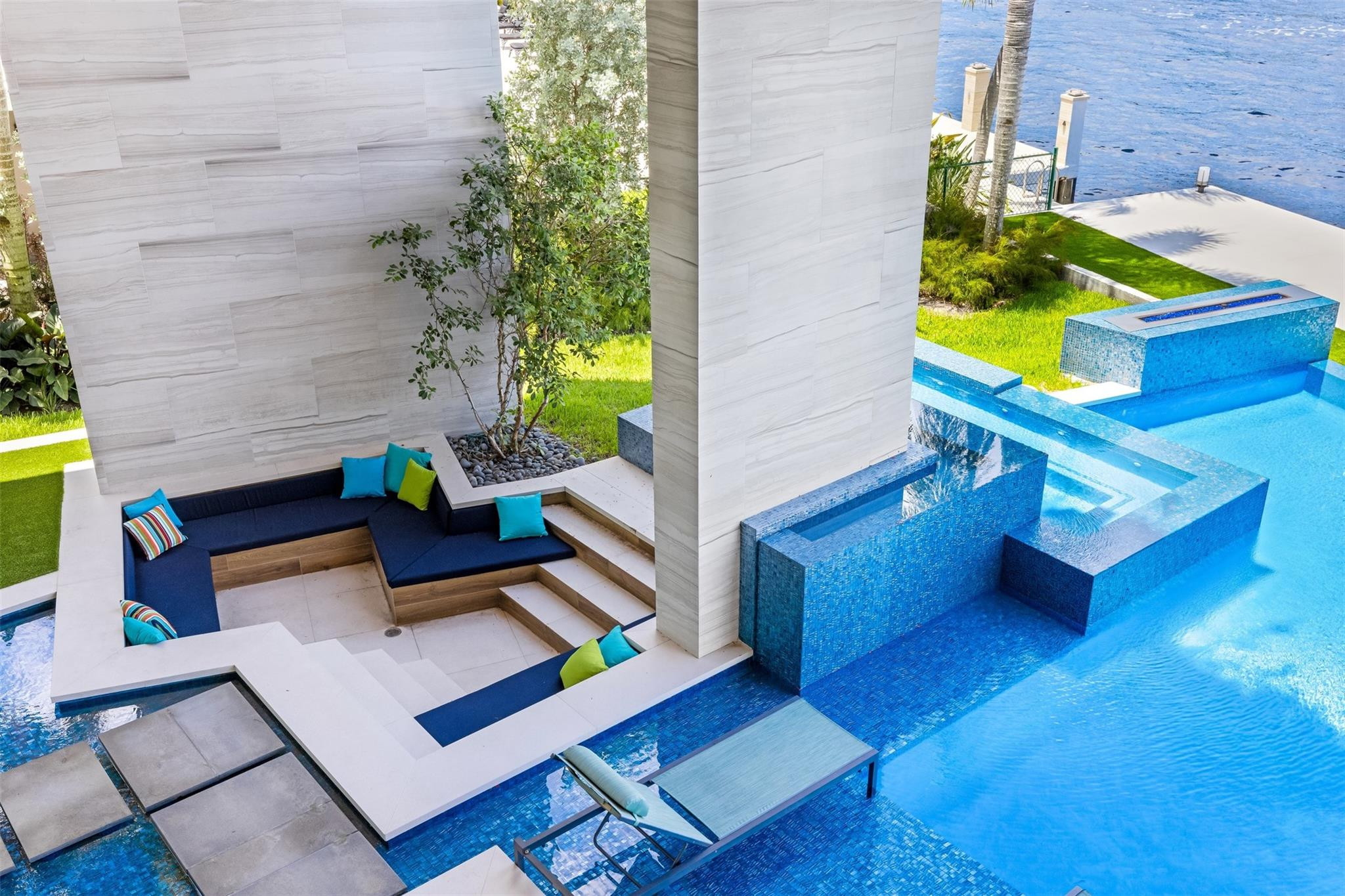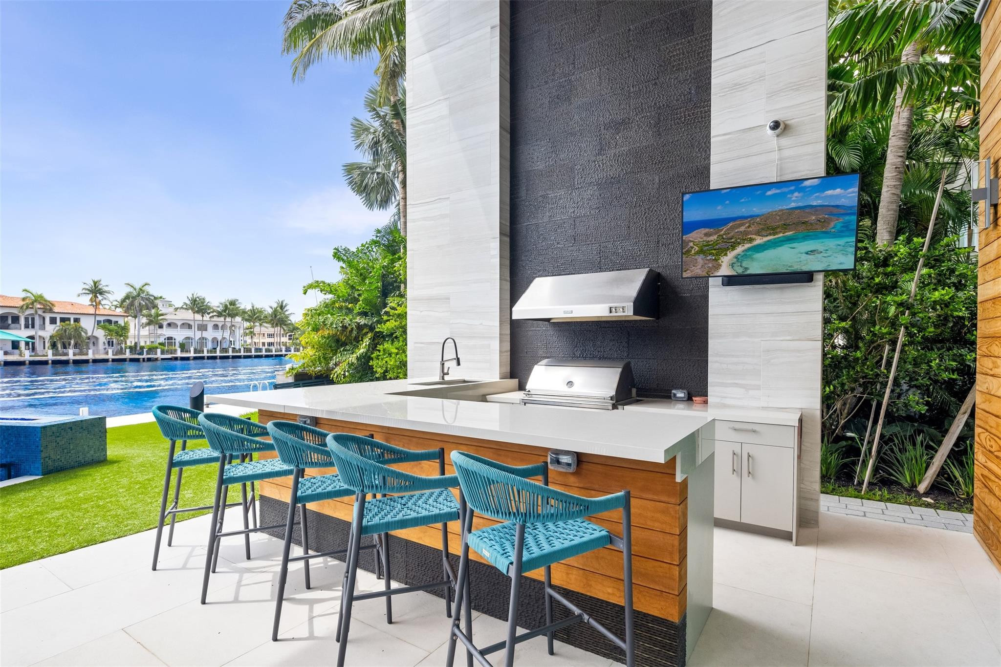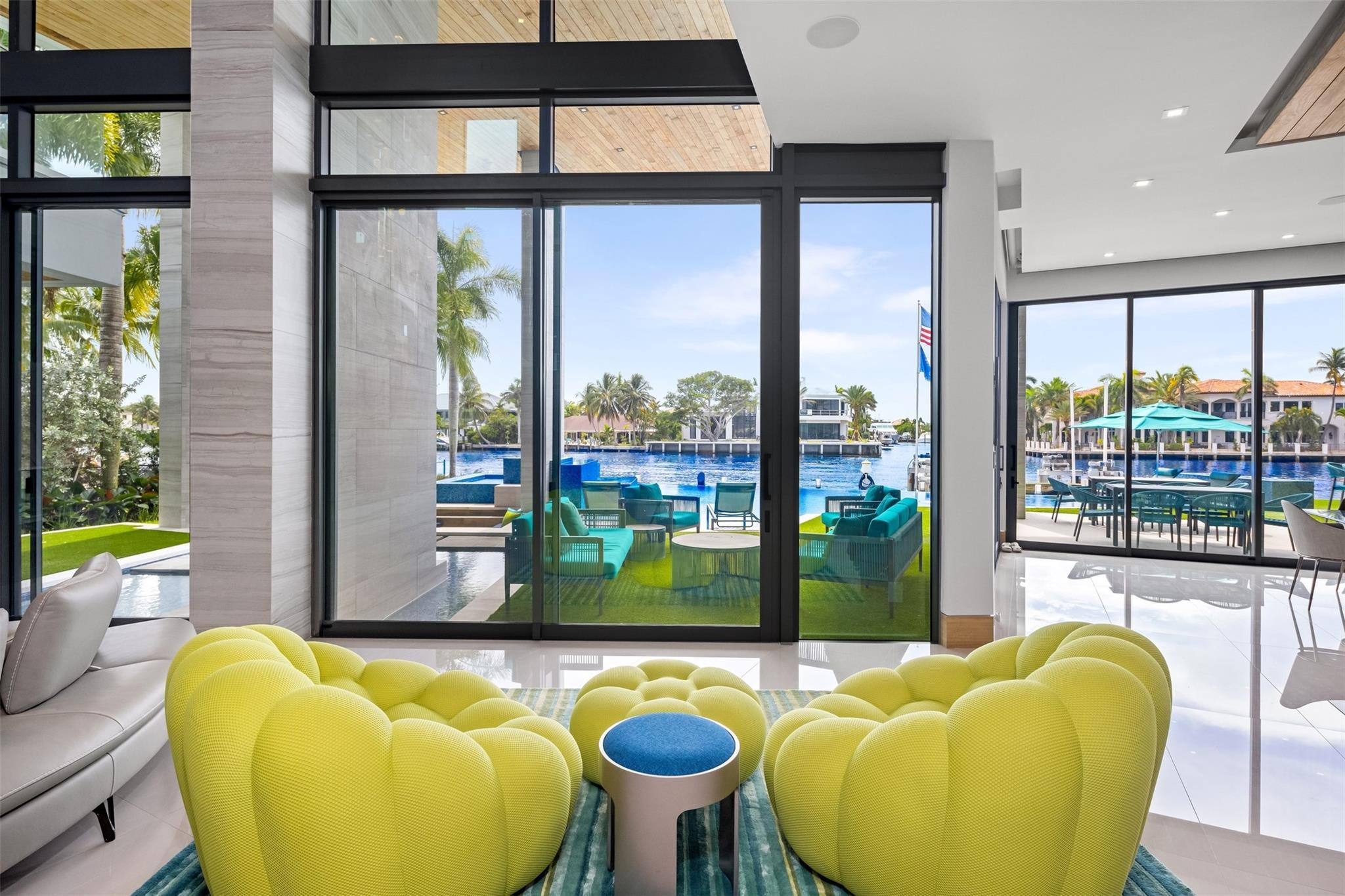 Step into luxury at this new, contemporary waterfront estate located in the secure & sought after Sea Ranch Lakes. Enter through a custom 10-foot front pivot door, find a three-story Floating Glass and Wood staircase, great room w soaring ceilings & book-matched Marble fireplace, 280-bottle temp controlled wine room & office. Chef's kitchen features double book-matched granite islands w hidden Butler's pantry. Upstairs, find 3 guest suites w Italian closets, lounge area w bar & two large terraces. Third floor is dedicated to the Primary suite w lounge area, gym, fireplace, expansive bath w Italian marble & his/hers closets, roof deck w over 1600SF & 360 degree views. Meticulously designed outdoor w summer kitchen, infinity edge pool w spa, 60K boat lift & 113' direct Intracoastal frontage.