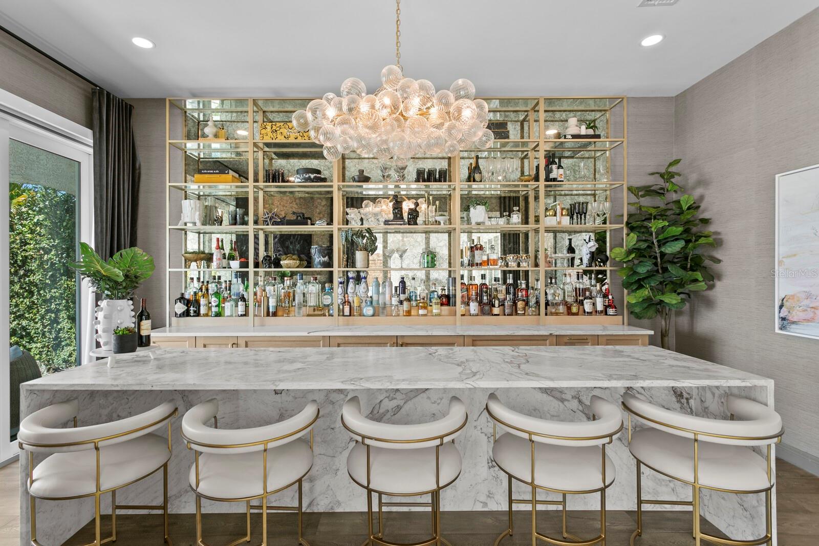 Positioned among Tampa Bay's BEST VALUES for open-bay luxury waterfront living. Masterfully renovated Mediterranean waterfront home in the gated community of Bridgeview Estates overlooking Tampa Bay. Featuring wide open bay views, 5,175 square feet of living space, and extensive designer-curated upgrades. Embrace a refined waterfront lifestyle on the bay with a boat slip/lift and resort-style outdoor living. A circular paver driveway leads to a covered entry framed by arched architectural details, illuminated by gas lanterns and featuring an imported handcrafted carved wood door. Inside, a dramatic two-story foyer boasts a sweeping staircase, custom iron balusters, and statement chandelier. Wide-plank hardwood flooring, coffered ceilings, custom lighting, wood beam accents and elevated ceilings carry throughout the home. The main living area has been reimagined with an open-concept design, anchored by a fireplace feature wall and expansive glass doors that frame water views and provide seamless access to the covered lanai. A dedicated lounge with custom bar features a fireplace, a waterfall-edge stone island, custom cabinetry, and mirrored accent walls with integrated shelving. Additional first-floor living spaces include a wainscoted game room with an adjacent study or dining room, offering flexibility for everyday living. The kitchen includes quartz countertops, Sub-Zero, Thermador, and Wolf appliances, a 6-burner gas range, wine refrigeration, a wine storage feature wall, and a dining area positioned to capture natural light and waterfront views. The first level also features a guest suite, laundry room, and a pool bath with convenient exterior access. Outdoor living is designed to maximize your waterfront lifestyle with a heated saltwater pool and spa, outdoor kitchen, pergola, custom geometric turf and paver inlay, along with multiple lounging areas. A covered lanai with wood ceiling and a gas firepit lounge creates inviting space for entertaining. Enjoy access to a common dock, with a private low-profile boat lift equipped with electric and water service. The second level includes a primary suite with fireplace, waterfront balcony, and dual walk-in closets. The primary bath features a soaking tub and glass-enclosed shower. An adjacent sitting area offers flexible living space and balcony access. Four additional bedrooms include two ensuite baths. A bonus room is positioned alongside one of the ensuite bedrooms, offering a flexible option for extended guests or a private suite-style living arrangement. Modern refinements complement the home's architectural character, including custom interior arched doors and Spanish tile accents. Recent updates include PGT impact-rated doors, a whole-home generator, EV charger, mechanical systems, and integrated audio/visual and security features. Enjoy the amenities of waterfront living, stunning views and sunsets in this exclusive South Tampa gated community offering fishing and kayaking opportunities nearby, with access to a sandy beach area along the shoreline. Seller reports home did not experience flooding during storms due to its higher ground elevation. Buyer to verify.