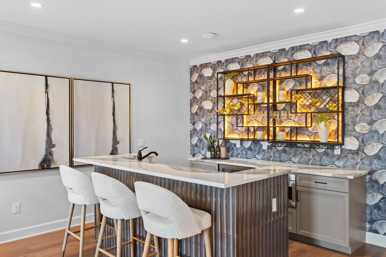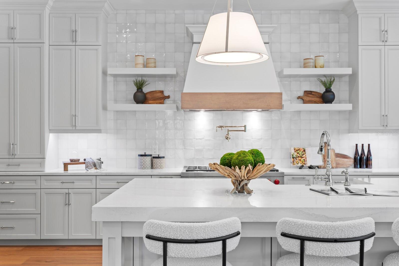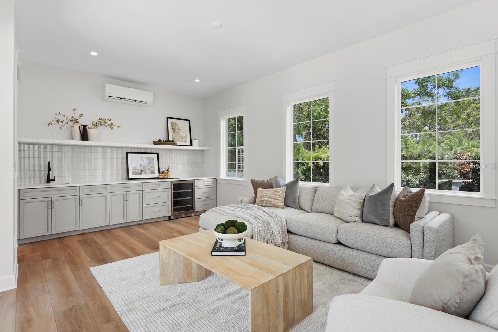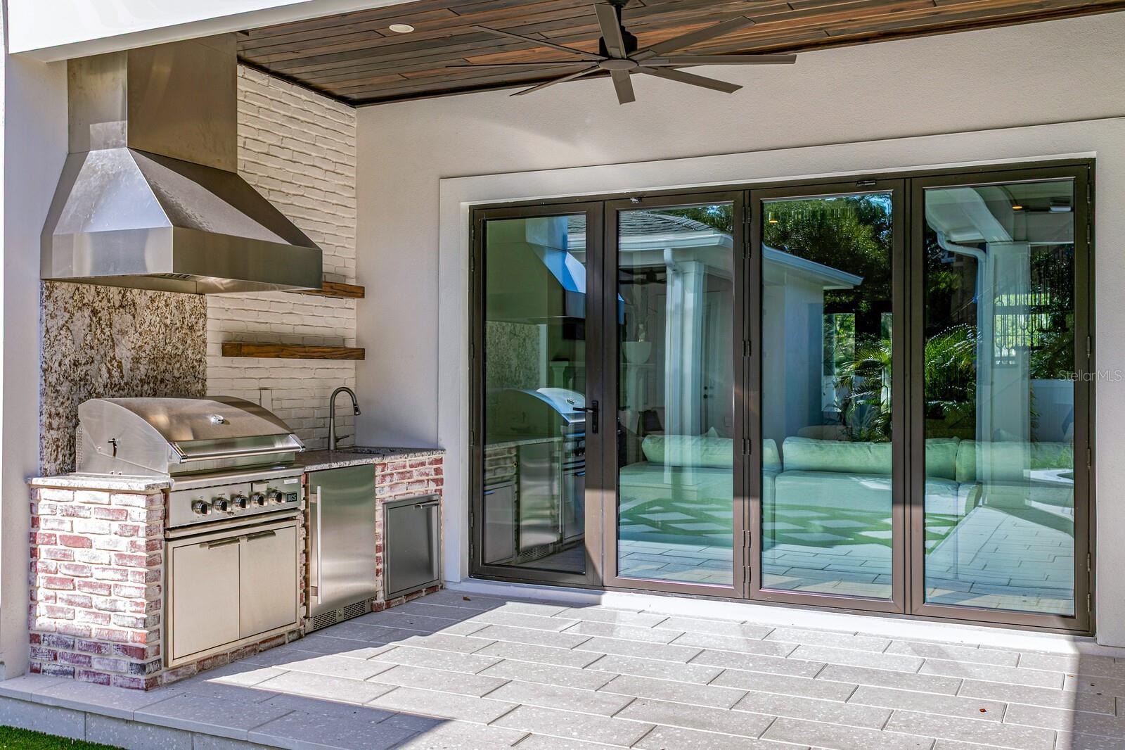 A gated entry framed by a black iron fence, brick columns, stone wall, and curated exterior lighting introduces this exceptional new construction by New Legacy Homes, establishing a sense of privacy, timeless elegance, and refined architectural presence. Situated in the desirable Beach Park / Swann Estates neighborhood, the residence reflects a thoughtful balance of luxury, functionality, and intentional design. A dramatic two-story foyer welcomes you inside, flanked by a formal dining room featuring a custom wine display and an elegant study. The great room commands attention with a sophisticated fireplace and an accordion-style NanaWall glass system that opens effortlessly to the outdoor living areas, creating a seamless indoor-outdoor experience. Designed for both luxurious daily living and grand entertaining, the gourmet chef's kitchen features Sub-Zero and Wolf appliances, an oversized island with seating and storage, custom cabinetry, pot filler, breakfast area, expansive walk-in pantry, and a fully equipped prep kitchen. The main living spaces overlook the pool and spa, outdoor kitchen, covered lanai, and private backyard, further enhancing the home's connection to its surroundings. The first floor offers a thoughtfully designed split-bedroom layout, providing coveted privacy with a guest suite and a grand owner's retreat. The primary suite serves as a serene escape, highlighted by tray ceilings, a spa-inspired bath with soaking tub and standalone shower, and a custom walk-in closet. Upstairs, three additional bedrooms each feature ensuite baths and walk-in closets, accompanied by a spacious bonus and game room with wet bar and a dedicated media room designed for memorable movie nights. Outdoor living is elevated by a resort-style pool cabana complete with lounge area, entertaining wet bar, kitchenette with breakfast bar, full bath with shower, and stackable washer and dryer hookups. The Energy Star Certified residence incorporates energy-efficient features including Icynene spray foam insulation, high-efficiency HVAC systems, impact-resistant windows, Hardie siding, and a whole-home generator. Additional highlights include statement lighting and custom appointments throughout, a generous laundry room, and a three-car front and side-load garage. Convenient to shopping and dining, this exceptional property offers quality construction, an oversized lot, architectural integrity, and meticulous attention to detail in one of South Tampa's most sought-after communities.