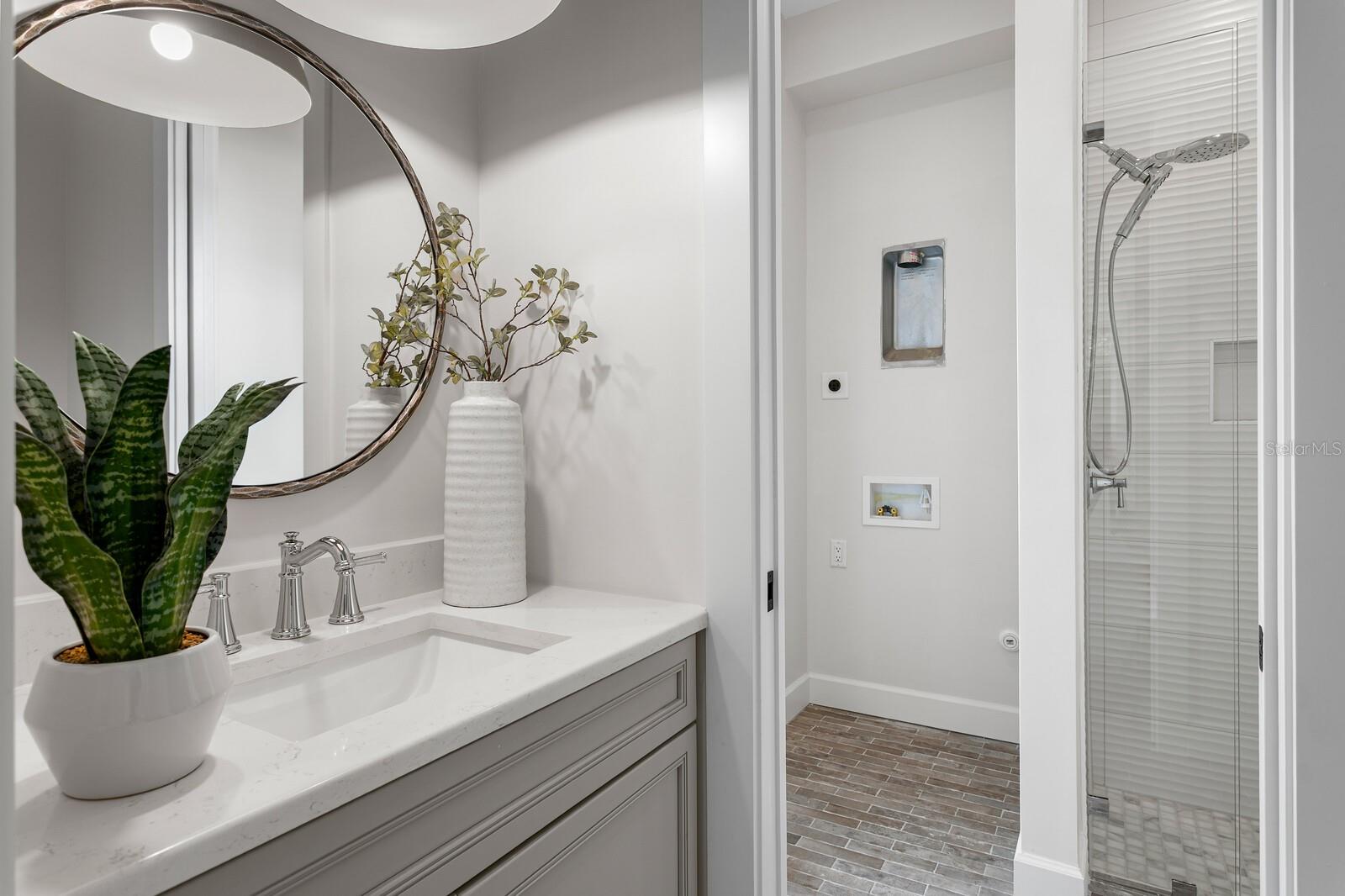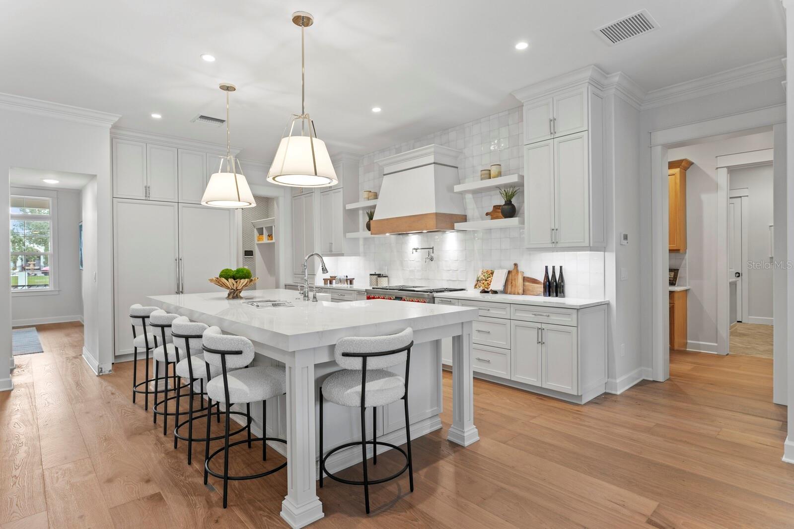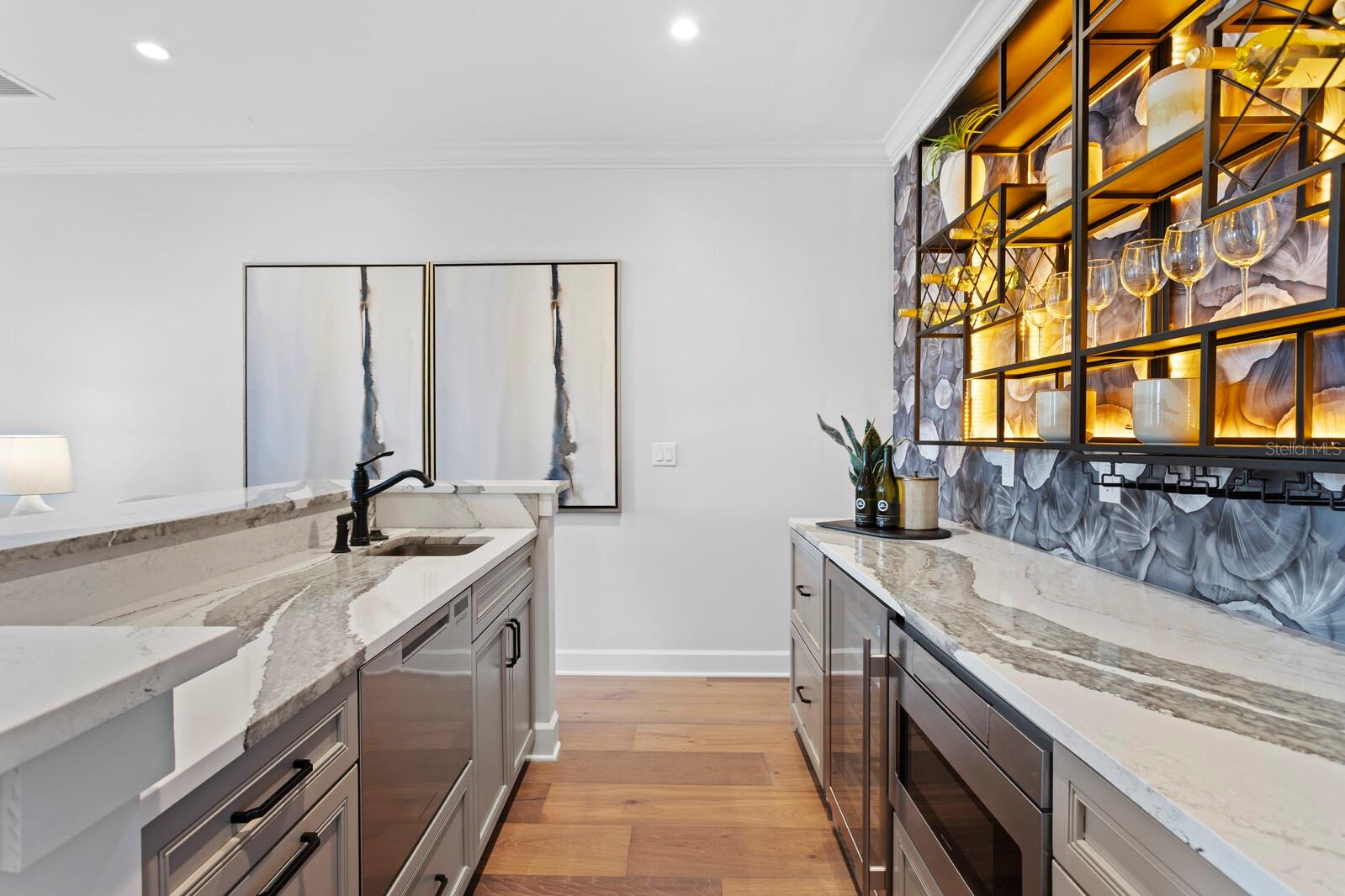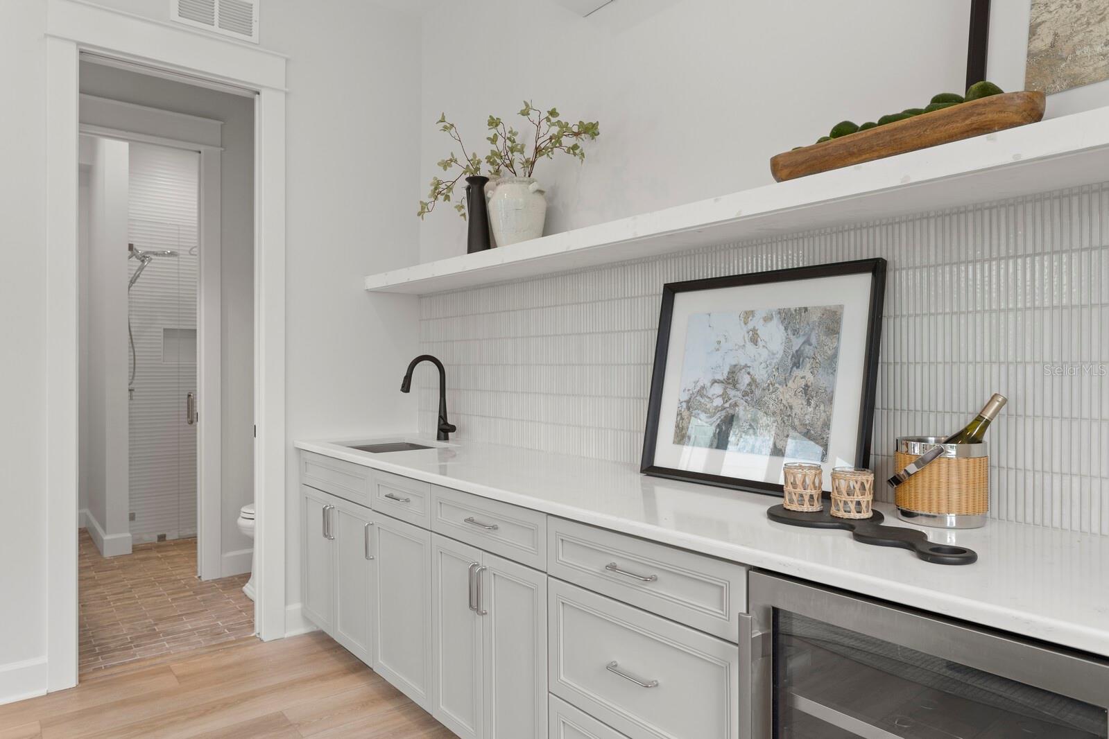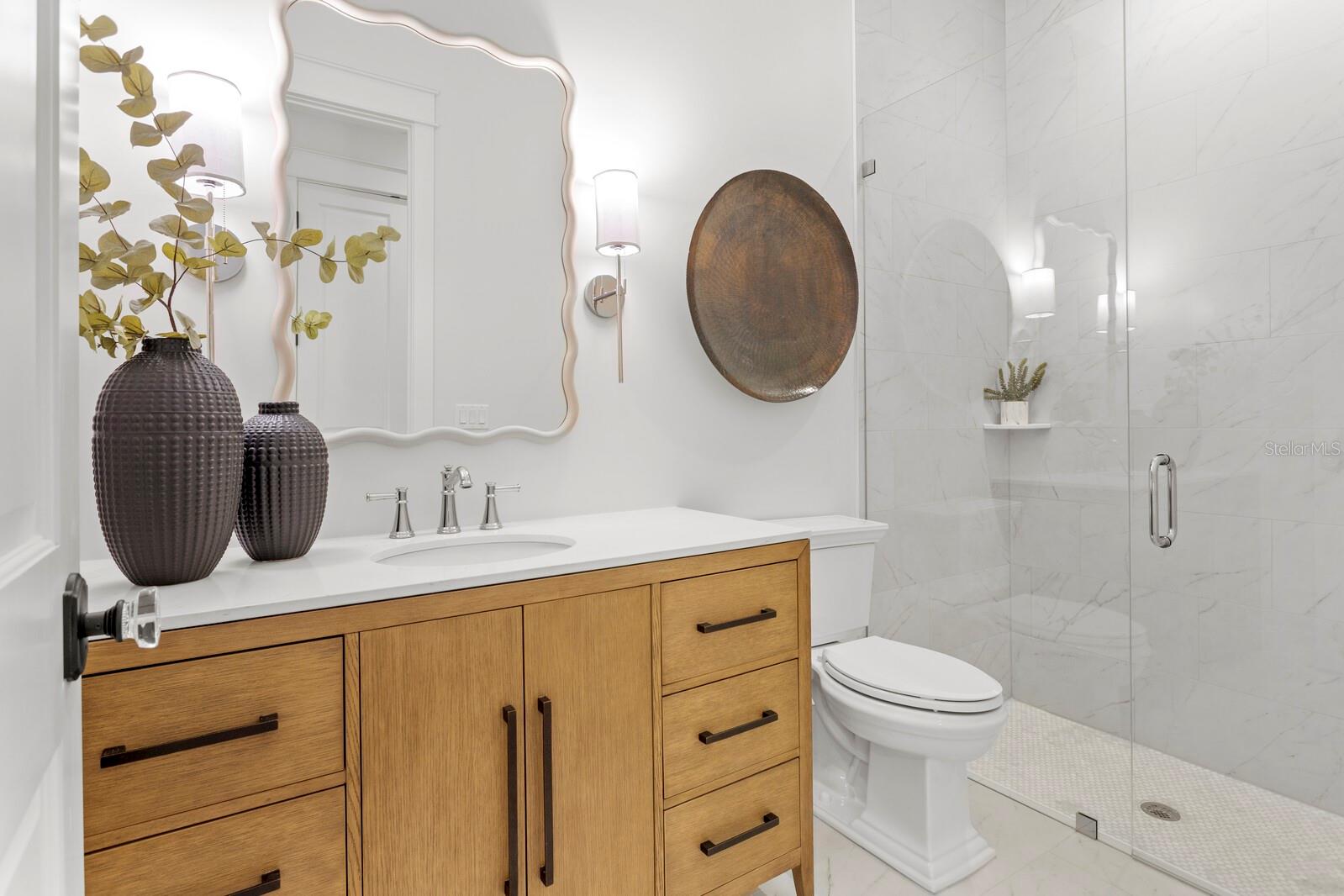 A gated entry framed by a black iron fence, brick columns, stone wall, and curated exterior lighting introduces this exceptional new construction by New Legacy Homes, establishing a sense of privacy, timeless elegance, and refined architectural presence. Situated in the desirable Beach Park / Swann Estates neighborhood, the residence reflects a thoughtful balance of luxury, functionality, and intentional design. A dramatic two-story foyer welcomes you inside, flanked by a formal dining room featuring a custom wine display and an elegant study. The great room commands attention with a sophisticated fireplace and an accordion-style NanaWall glass system that opens effortlessly to the outdoor living areas, creating a seamless indoor-outdoor experience. Designed for both luxurious daily living and grand entertaining, the gourmet chef's kitchen features Sub-Zero and Wolf appliances, an oversized island with seating and storage, custom cabinetry, pot filler, breakfast area, expansive walk-in pantry, and a fully equipped prep kitchen. The main living spaces overlook the pool and spa, outdoor kitchen, covered lanai, and private backyard, further enhancing the home's connection to its surroundings. The first floor offers a thoughtfully designed split-bedroom layout, providing coveted privacy with a guest suite and a grand owner's retreat. The primary suite serves as a serene escape, highlighted by tray ceilings, a spa-inspired bath with soaking tub and standalone shower, and a custom walk-in closet. Upstairs, three additional bedrooms each feature ensuite baths and walk-in closets, accompanied by a spacious bonus and game room with wet bar and a dedicated media room designed for memorable movie nights. Outdoor living is elevated by a resort-style pool cabana complete with lounge area, entertaining wet bar, kitchenette with breakfast bar, full bath with shower, and stackable washer and dryer hookups. The Energy Star Certified residence incorporates energy-efficient features including Icynene spray foam insulation, high-efficiency HVAC systems, impact-resistant windows, Hardie siding, and a whole-home generator. Additional highlights include statement lighting and custom appointments throughout, a generous laundry room, and a three-car front and side-load garage. Convenient to shopping and dining, this exceptional property offers quality construction, an oversized lot, architectural integrity, and meticulous attention to detail in one of South Tampa's most sought-after communities.