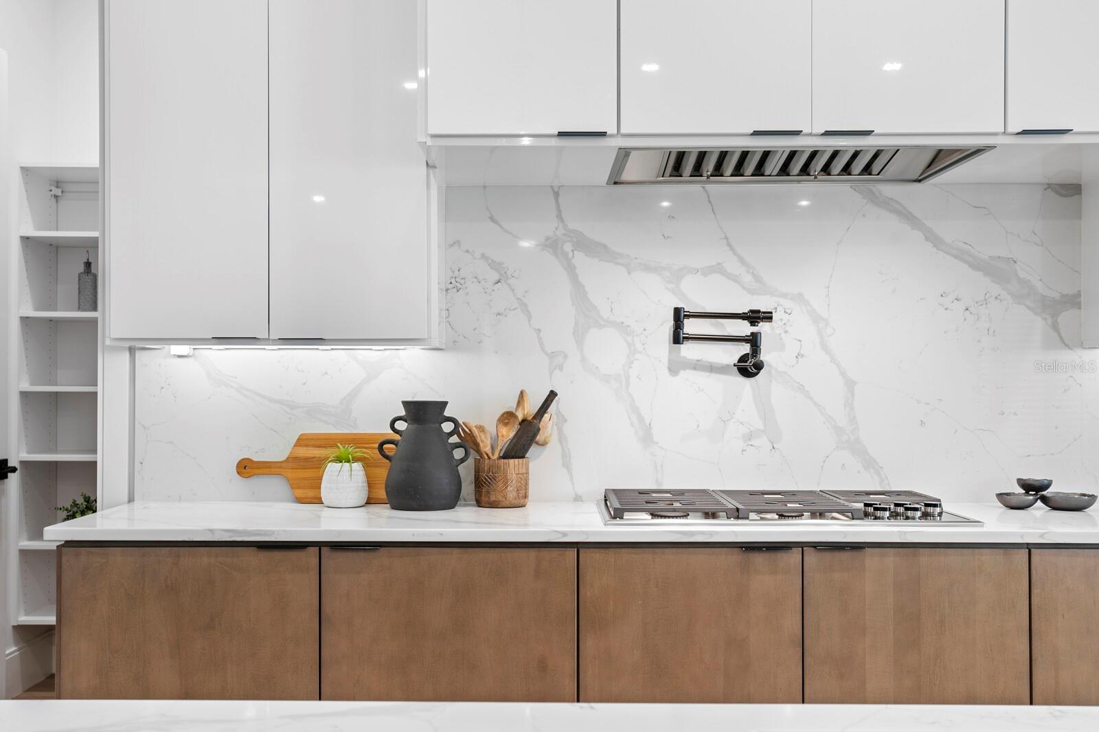 Experience refined modern living in this 2023-built home by Steven Anthony Luxury Homes. Built to the latest building codes with impact windows/doors, and elevated FEMA-compliant living for flood risk reduction. Enjoy refined finishes and superior appointments throughout with 4,728 SF Living Space / 7,873 Total Square Ft, including an oversized 3 car garage with possibility of parking up to 5 cars. A gated circular driveway leads to a striking three-story residence with 3-stop elevator service to all levels. The expansive great room boasts 10-ft ceilings, a custom feature wall, and sliding doors opening to the terrace. The gourmet kitchen features Wolf and Sub-Zero appliances, a sleek two-toned cabinetry, a quartz waterfall island, double ovens, a gas range with pot filler, and a walk-in pantry. The main floor includes an ensuite bedroom, a private office with a hidden closet, and a mudroom with a built-in bench and storage for added functionality. The second-floor primary suite offers a spa-inspired bath, a custom walk-in closet with built-in shelving, and a morning coffee bar with a sink and beverage fridge. Three additional ensuite guest bedrooms and a bonus room with a media closet and dry bar--all featuring custom shelving in the closets for optimized organization. Additional features include wide-plank hardwood flooring, statement lighting, security cameras, generator pre-wire, blinds package, and exterior screens. Outside, the heated saltwater pool, spa, fountain, and covered lanai create a private oasis for year-round enjoyment. Enhanced with an electronic gate, this estate ensures privacy, security, and uninterrupted comfort, all in a prime location near A-rated schools, fine dining, shopping, cultural attractions, Hyde Park Village, Tampa International Airport, and Bayshore Boulevard. This is luxury living at its finest in the heart of South Tampa.