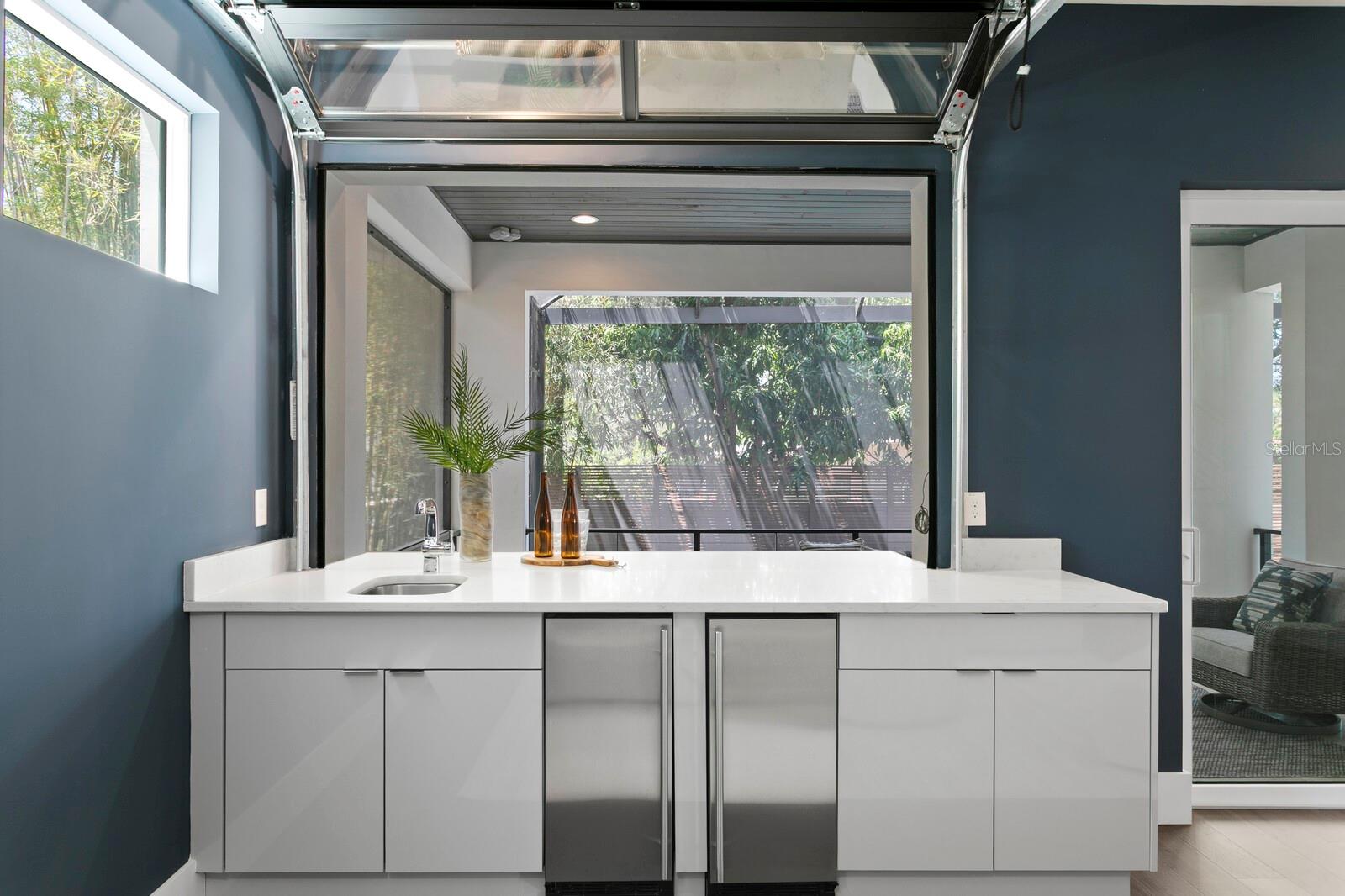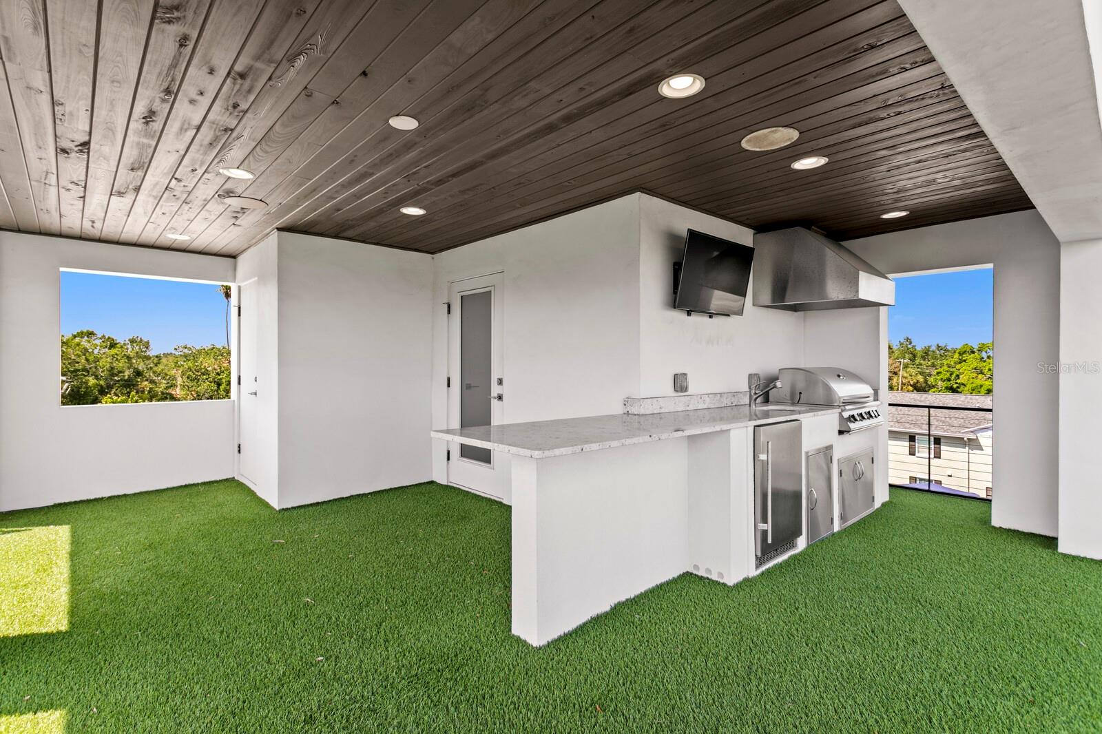 Experience elevated modern living in this 2019-built residence by TB Homes, ideally located on Davis Islands--one of Tampa's premier waterfront neighborhoods. This home was constructed to newer building codes and features elevated living, block construction, and impact-rated windows and doors. The main level welcomes you with a grand open-air foyer, floor-to-ceiling glass, and a cable-railed staircase. The expansive great room showcases a dual-sided 60-inch electric fireplace and retractable sliders. Entertain with ease in the bonus room featuring a roll-up pass-through from the wet bar to outdoor bar seating, complemented by a sleek designer kitchen with quartz waterfall island, marble backsplash, Sub-Zero and Wolf appliances, and butler's pantry. A private guest suite completes the first floor. A four-stop elevator provides access to all levels, including a rooftop deck. The second floor hosts an elegant primary suite with morning bar, spa-style bath with soaking tub and dual vanities, and a 200+ sq ft custom walk-in closet. Three additional bedrooms, media room, and large laundry complete this level. The rooftop terrace features open-air and covered lounge areas, outdoor kitchen, half bath, and panoramic views of the Seaplane Basin and Davis Islands Yacht Club. The outdoor area offers a heated saltwater pool and spa, travertine deck, cypress-ceiling lanai with summer kitchen, and pool bath. Additional features include new pool equipment, turf, EV charging station, Control4 smart system, hardwood flooring, level 5 drywall, and designer finishes. Davis Islands residents enjoy nearby amenities with convenient access to top schools, shopping, dining, and sports venues.